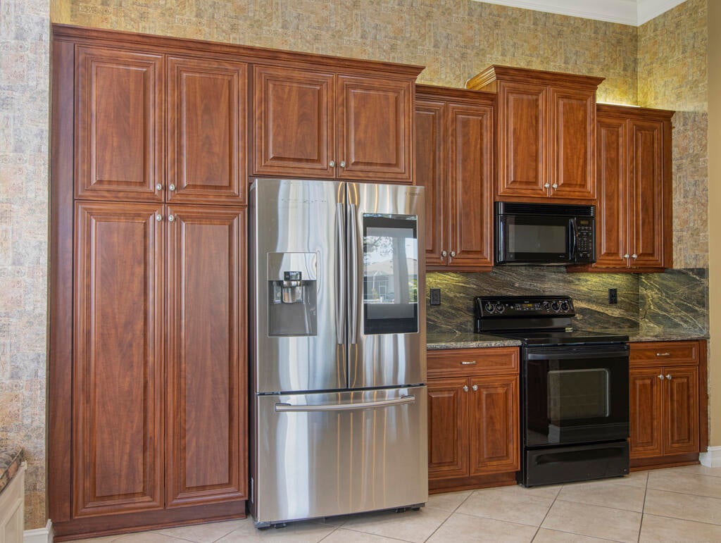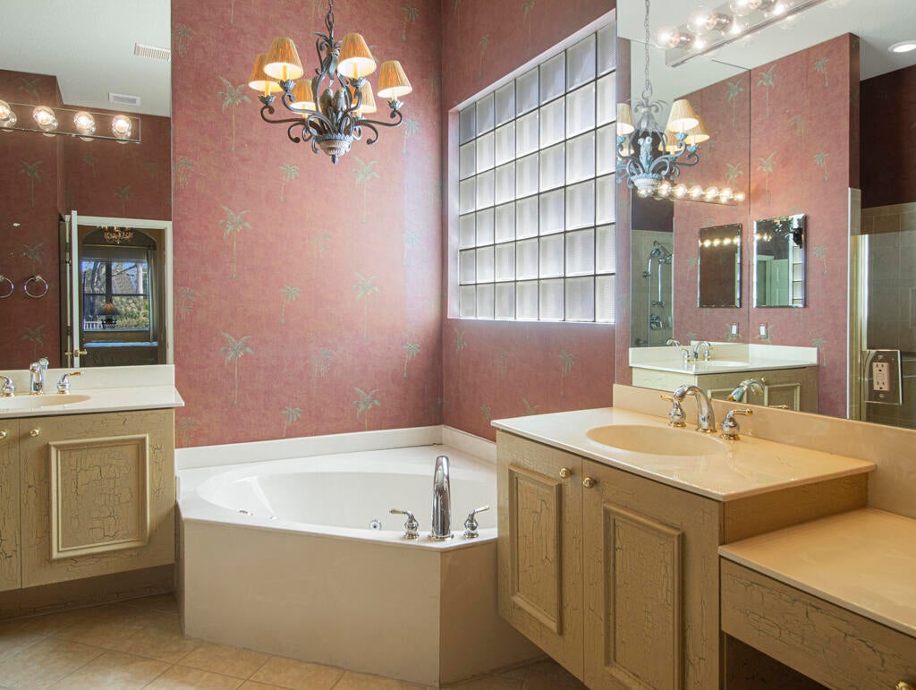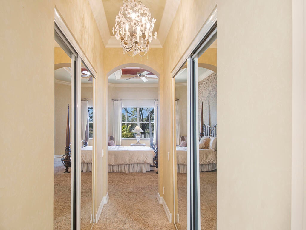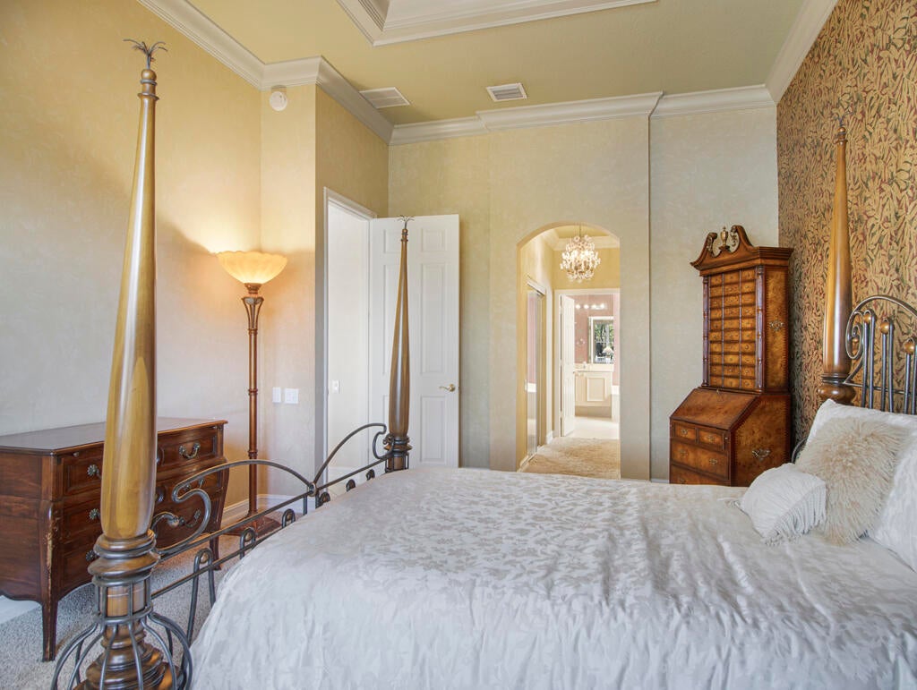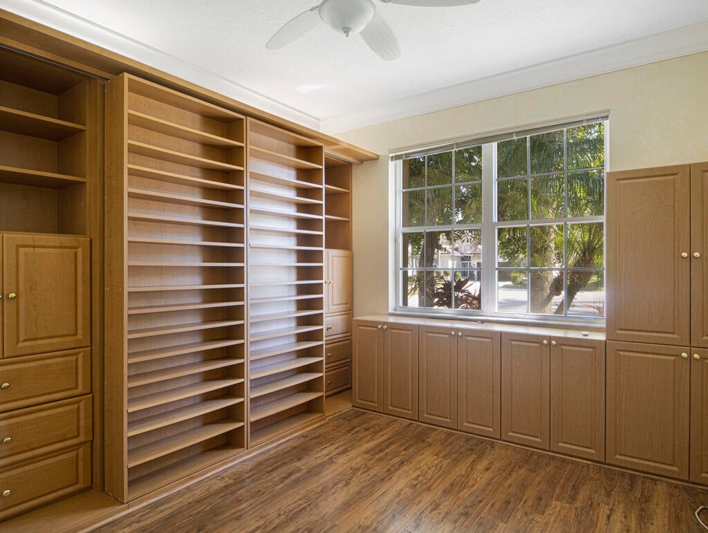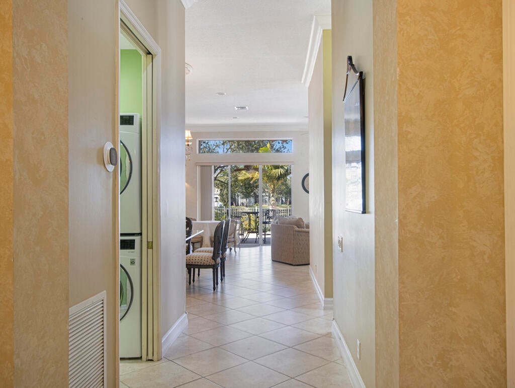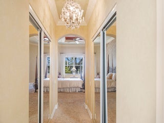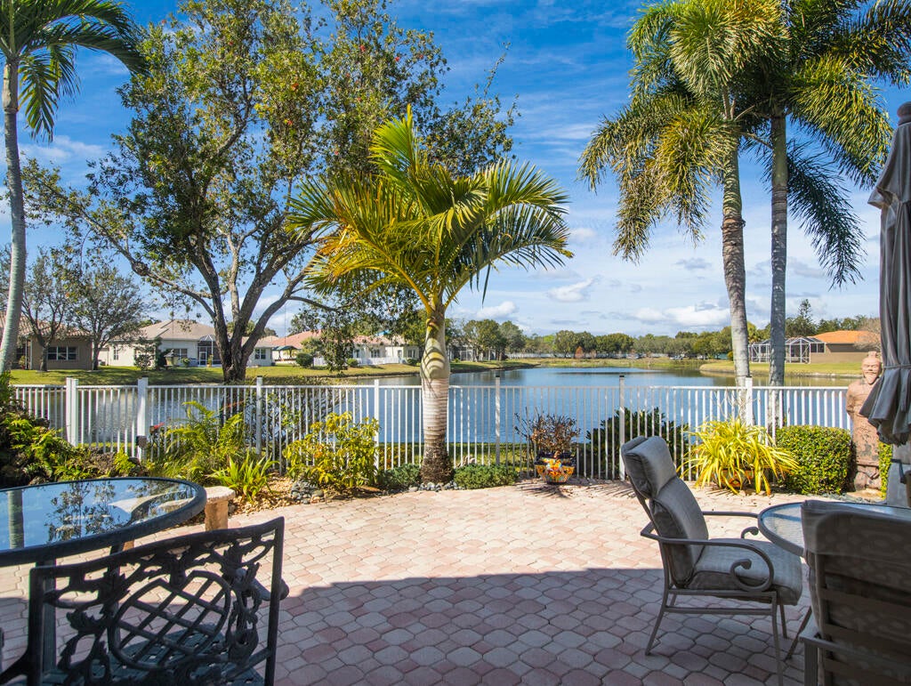 Step into S. Florida's best, a sophisticated LAKEFRONT on a CUL DE SAC in luxurious Bellaggio, an active adult community. Enjoy uncommon peace of mind with features such as: new 2024 ROOF, 2025 Whole-house GENERATOR, 2021 AC w/UV PURIFICATION, 2022 water heater, 2023 refrigerator, 2024 washer/dryer and Accordion shutters throughout. The traditional interior is a perfect canvas for your personal touches. Note, Murphy's bed, bay window bench, high ceilings & large windows flood the space with natural light & dreamy lake views. The oversized & fenced patio is a tropical showstopper with coy-pond, exotic palms & sculptures. Centrally located with quick access to the FL Turnpike, 441, the beach, equestrian sports, hospitals, PBI airport & miles of shopping & dining - this home has it all.Measurements and information offered is deemed reliable but is not guaranteed. Storage cabinets in the garage convey. Offered As-Is with right to inspect.