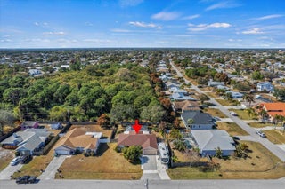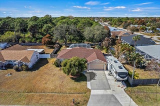 Beautiful 3BR/2BA CBS pool home with 2-car garage located east of US-1. Offering 1,496 SF under air, this split-bedroom floor plan features vaulted ceilings, ceramic tile throughout, a spacious living area, and an open kitchen with ample cabinetry. The primary suite includes dual sinks and a walk-in closet. Enjoy a screened lanai, private pool, fenced yard, and covered front porch. City water and sewer plus well irrigation for lawn care. Conveniently located near beaches, shopping, dining, hospitals, and more.