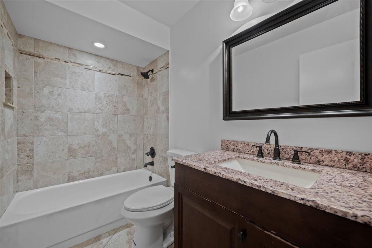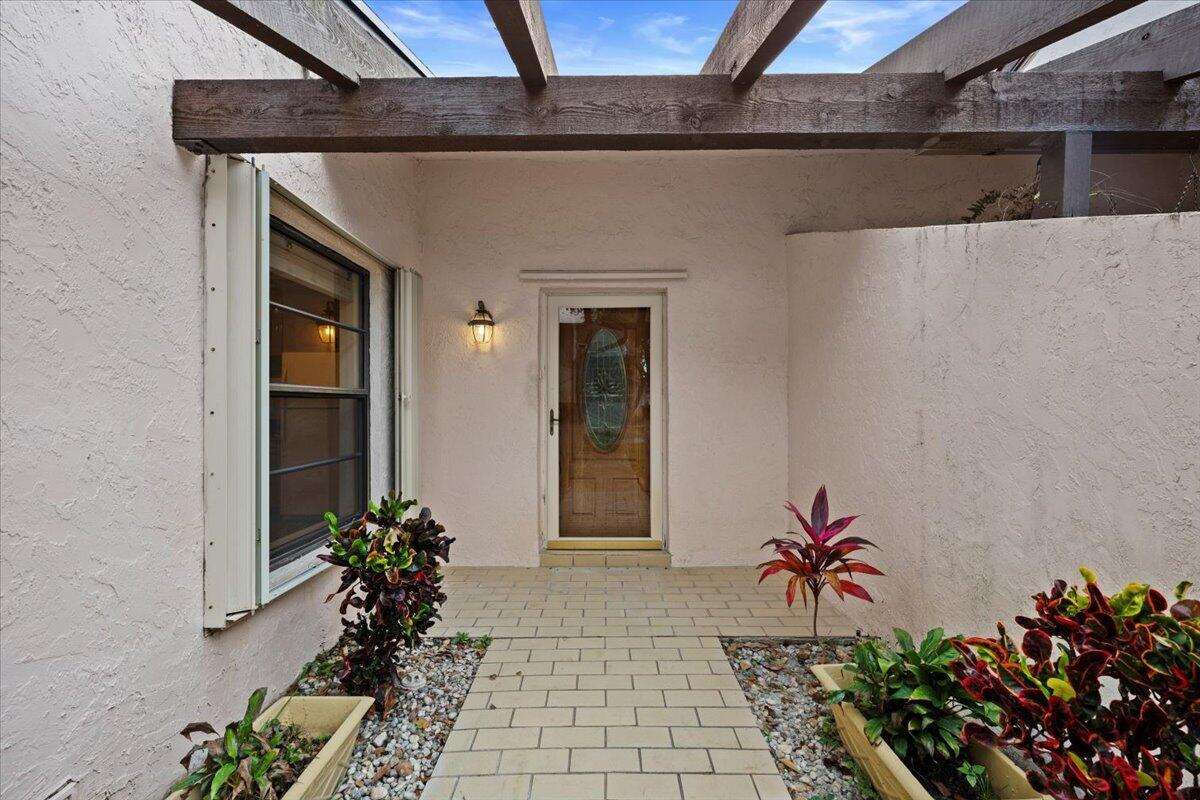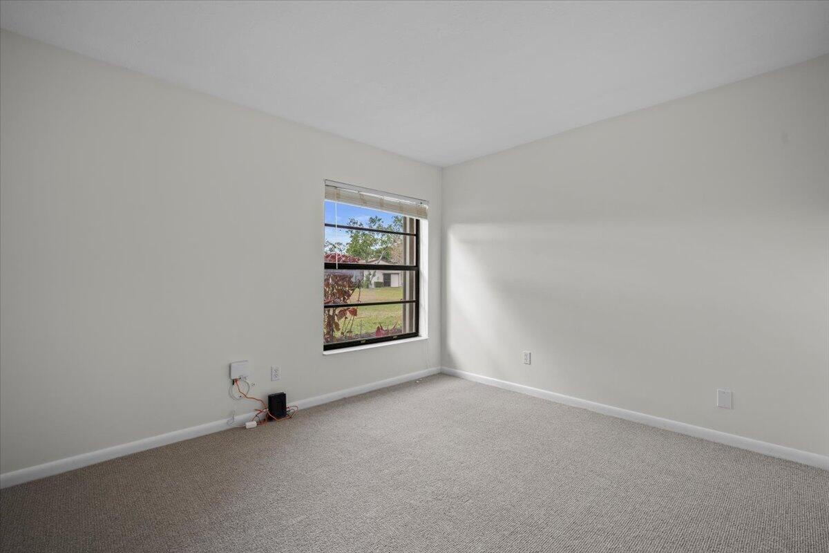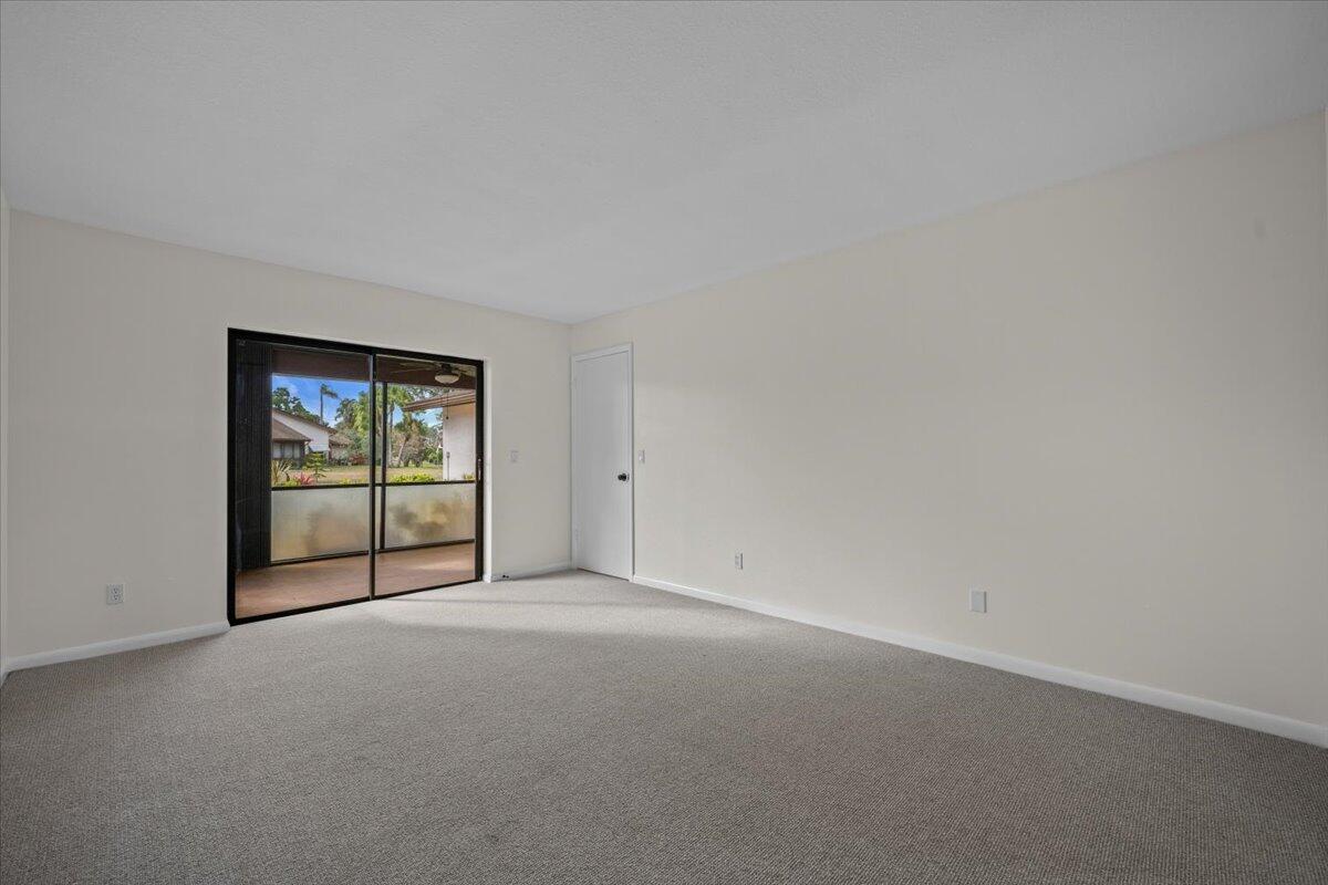 This lovely 2 bedroom, 2 bathroom villa has it all! New paint, new knockdown finish on ceilings, new carpet in bedrooms, and the list goes on. Unit is conveniently located in a quaint 55+ community in Greenacres near shopping, banks, bowling, movies, and many restaurants. The screened lanai overlooks a beautiful stone patio with mature palms that opens up to a large grassy common area. The community features a clubhouse with organized activities, a refreshing swimming pool, and tennis courts and shuffleboard courts. No commercial vehicles. At least one occupant must be 55+.