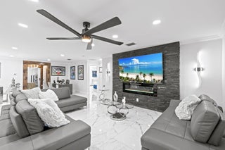 Private 12.45-acre fully renovated equestrian estate offering luxury, land, and lifestyle. This 5BR/5.5BA home was completely remodeled in 2022 with new metal roof, dual-zone HVAC, electrical, plumbing, septic, impact windows and doors, plus quartz kitchen and baths. Large-format tile flows throughout 3,345 sq ft of refined living space. Outdoors, enjoy a resort-style setting with a full outdoor kitchen, pergolas, NBA basketball court, camera system, solar lighting, irrigation, and a 1/2-acre stocked pond with dock, bridge, and tiki hut. Equestrian-ready 2,560 sq ft barn with 8 stalls, washroom, saddle room, and over $400K invested. Gated entry with waterfalls and smart call box completes this exceptional private compound built for privacy and scale.Private 12.45-Acre Luxury Equestrian Estate + Premier Event Venue Opportunity An extraordinary, fully renovated 12.45-acre private compound offering the perfect fusion of luxury living, equestrian excellence, and premier income-producing event venue potential. Ideally situated within a sought-after equestrian area, this gated estate was completely remodeled in 2022 and thoughtfully designed for upscale lifestyle living, large-scale entertaining, and equestrian operations. The 5-bedroom, 5.5-bath residence encompasses 3,345 sq ft of refined interiors, featuring large-format tile throughout, a designer quartz kitchen and spa-inspired baths, new metal roof, dual-zone HVAC systems, updated electrical and plumbing, new septic system, and full impact windows and doors for enhanced security and efficiency. Outdoors, the estate unfolds into a true resort-style retreat and event-ready showcase. Amenities include a fully equipped outdoor kitchen, elegant pergolas, custom outdoor fireplace, NBA basketball court, solar landscape lighting, irrigation system, and a picturesque ½-acre stocked pond complete with dock, bridge, and tiki hutcreating a breathtaking backdrop for luxury events, weddings, private celebrations, and corporate retreats. For guest convenience during events, the property also features dedicated exterior restroom facilities, including an exclusive men's half bath and a separate women's full bath. Equestrian improvements are equally impressive, highlighted by a 2,560 sq ft barn with 8 stalls, washroom, saddle room, and adjoining fenced pasture areas suitable for turnout and grazing, with over $400K invested into equine infrastructure. Within the equestrian section of the property, a renovated on-site camper provides private accommodations ideal for a groundskeeper, trainer, or equestrian staff member. A comprehensive, professionally installed surveillance system is strategically positioned throughout the property, providing enhanced monitoring and peace of mind across the residence, barn, and grounds. A grand gated entrance with waterfalls and smart call box completes this exceptional estate, delivering unmatched privacy, scale, and versatility perfect as a luxury private residence, equestrian compound, or high-end income-producing event venue in the heart of St. Lucie County.