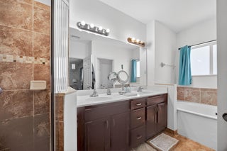 Experience the space of a single-family home in this upgraded 3BR, 2.5BA townhome with nearly 2,000 sq ft. Soaring cathedral ceilings and an open layout make it perfect for modern living. The kitchen features stainless steel appliances, granite counters, and an updated walk-in pantry. Smart switches and a new Honeywell thermostat add convenience. Enjoy tile floors downstairs and newer vinyl upstairs. The master suite boasts a private balcony with gorgeous sunset views, walk-in closet, and spa-like ensuite. Two guest rooms share a Jack & Jill bath. Outside, entertain on the stamped patio with a pizza oven and no rear neighbors. Includes 2-car garage, and full laundry room. Monthly HOA covers AT&T U-verse internet, DirecTV cable, frontyard landscaping, community pool, & exterior maintenanceNoteworthy Mentions: Roof 2015 HVAC 07/2014 HWH 09/2014 New Vinyl Flooring in Bedrooms/Stairs/Hallways 2022 Outdoor Pizza Oven Fenced in Patio Updated Walk-in Pantry with floor to ceiling shelving Updated home with Smart Switches Ring Camera System Newer Honeywell Home Thermostat (controlled through app or Google Home) Partitioned off garage with Utility wall (used as Home office, can be converted back for more garage space)