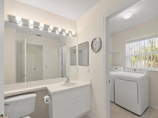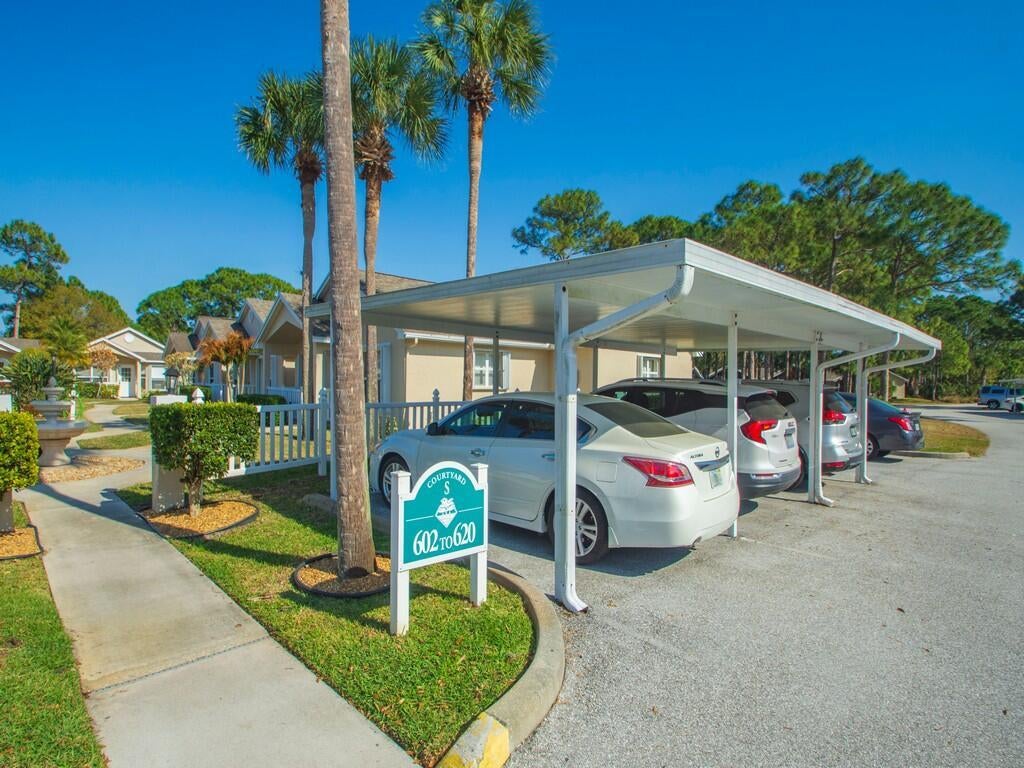 Charming villa located in Kings Isle, a desirable 55+ community. This well-maintained home offers 2 bedrooms, 2 bathrooms, and a convenient carport at the entrance of courtyard. Features title flooring throughout, updated kitchen with white cabinets, quartz countertops and beautiful backsplash. Additional improvements include newer LG washer and dryer, 2023 W/H. freshly painted interior, and partial hurricane shutters for front windows and door. Villa has been fully re-piped for added peace of mind. Relax and unwind in the spacious screened and enclosed patio perfect for relaxing or entertaining. Hassle free HOA includes Lawn Care, internet, cable, and manned guard gate Welcoming Resort style Clubhouse with recreational facilities and over 30 interesting clubs and many events to choose.Conveniently located near shopping, medical center, golf course, and I-95