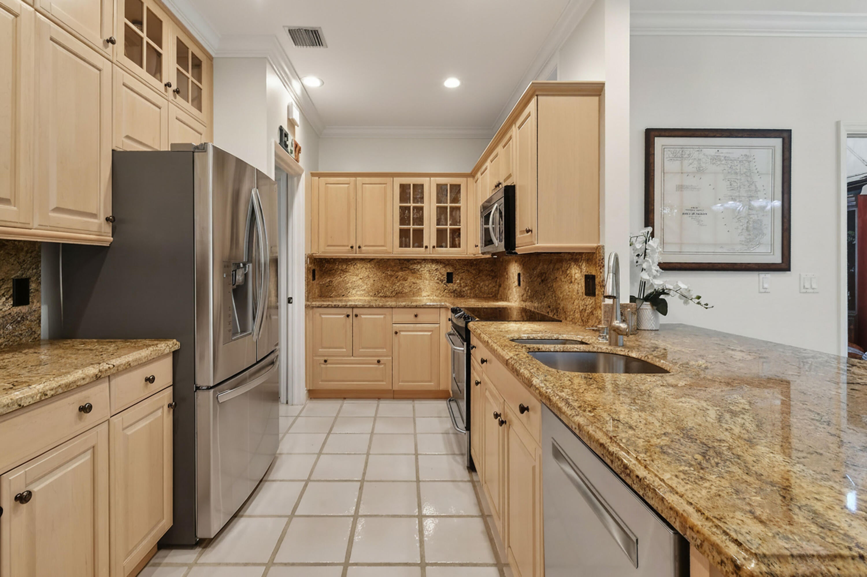 Tucked within the intimate, gated seaside enclave of Jupiter Key, just steps from the Atlantic shoreline, this Key West-style residence offers a rare opportunity to own within one of Jupiter's most charming and tightly held coastal neighborhoods.Positioned along a quiet, palm-lined drive directly across from one of the area's few dog-friendly beaches, the setting feels less like a residential development and more like a private coastal village. Morning walks to the ocean, sunset strolls along the sand, and effortless access to beachside dining, fitness, and cultural venues define daily life here. This is a place where the lifestylenot densitysets the tone. Spanning approximately 2,192 living square feet, the residence offers three bedrooms, two full baths, and one half bath, including a desirable main-level primary suite. Soaring cathedral ceilings and expansive impact windows flood the interiors with natural light, while French doors open to a screened tropical porchcreating seamless indoor-outdoor living and embracing the relaxed rhythm of Jupiter's coastal environment. The kitchen is functional and inviting, featuring granite countertops with a full-height granite backsplash, stainless steel appliances, custom wood cabinetry, and generous prep space. An eat-in breakfast area flows naturally into the family room, creating a connected gathering space ideal for everyday living or hosting after a day at the beach. The primary suite enjoys tranquil garden views, tile flooring, and a customized walk-in closet with built-in shelving and cabinetry. The en-suite bath includes dual vanities with granite counters, a soaking tub, and a frameless glass walk-in shower with bench seating. Upstairs, a spacious loft offers flexible living space well suited for a home office, media lounge, or additional guest retreat, while secondary bedrooms are comfortably proportioned and filled with natural light. Outdoors, the screened porch with wood decking and ceiling fan is framed by mature palms and lush tropical landscaping, offering a quiet extension of the living space. Brick paver walkways, classic island architecture, durable Hardie board siding, and a 2017 metal roof reinforce the home's enduring coastal character. A one-car garage provides convenience and additional storage. While the residence presents an opportunity for thoughtful modernization, its volume ceilings, floor plan, and structural integrity offer exceptional bonesan ideal foundation for reimagining a bespoke beach retreat in a location that cannot be replicated. Jupiter Key offers a rare blend of privacy and walkability, with a community pool and direct beach access just moments away. From boating and waterfront dining to boutique shopping, theater, and Palm Beach International Airport, everything that defines Jupiter's coastal lifestyle is within easy reach. In a market defined by the scarcity of true walk-to-the-ocean residences, this property represents an opportunity to secure location, lifestyle, and long-term value within one of Jupiter's most desirable seaside enclaveswhere every day feels like a retreat.