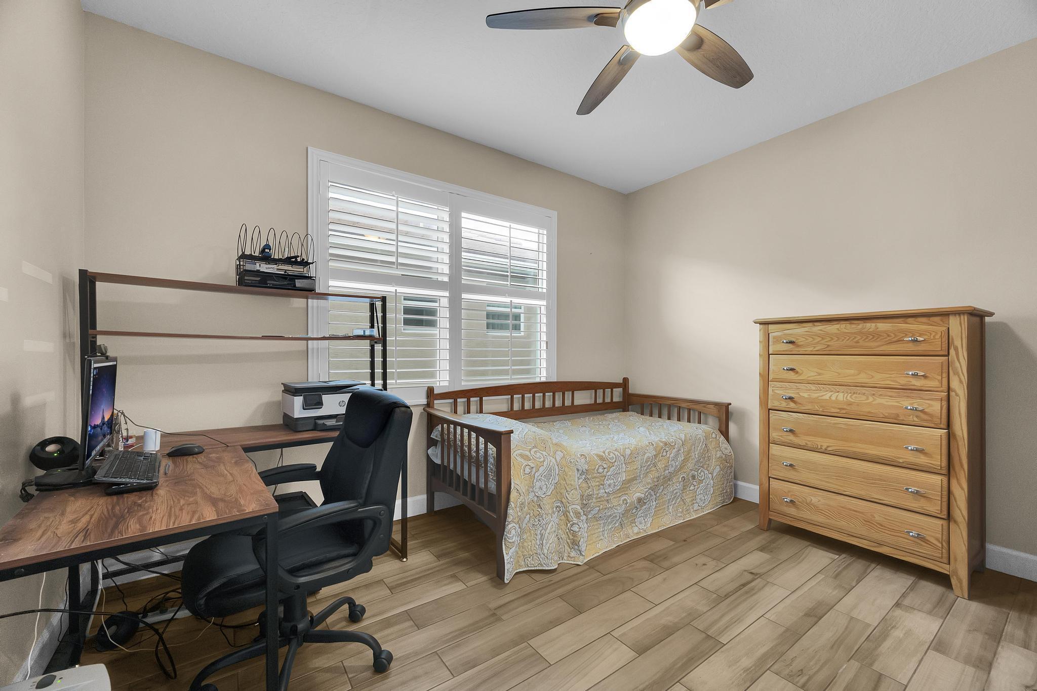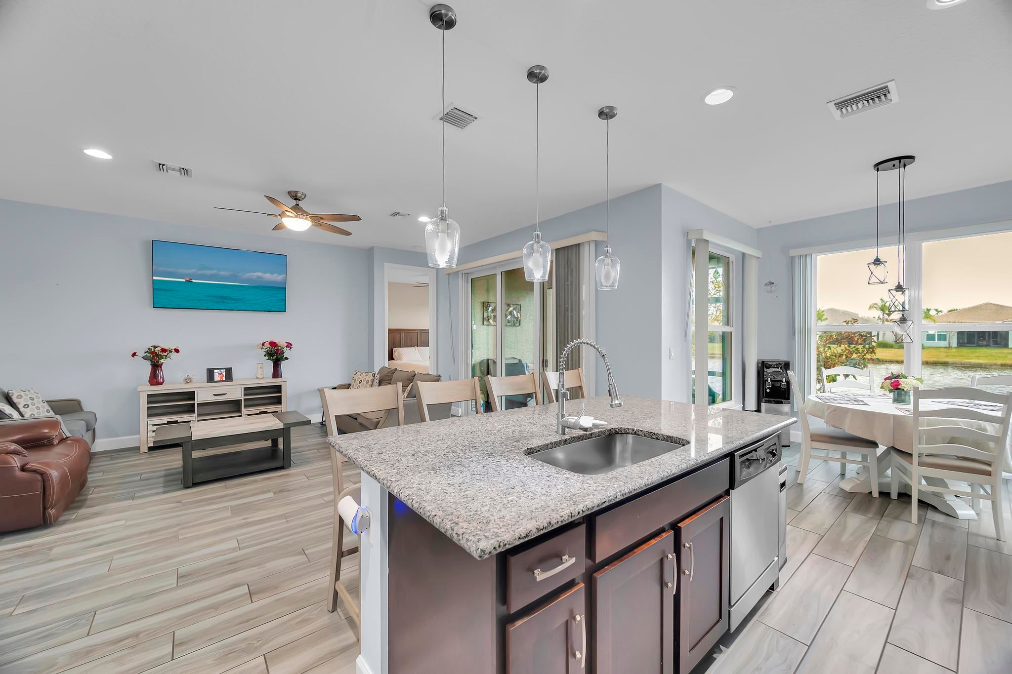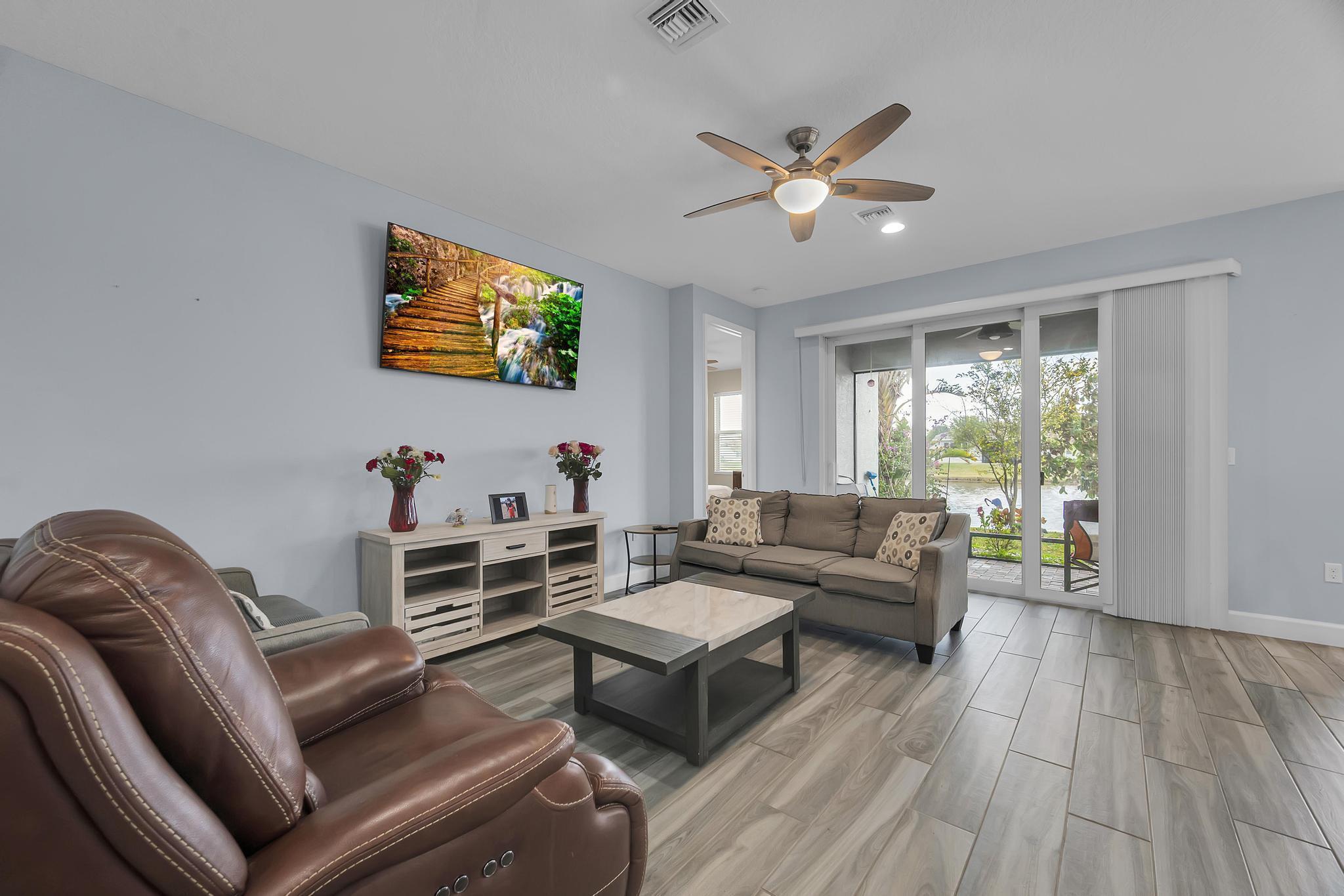 Welcome to 12127 SW Jasper Lake way in beautiful Port Saint Lucie, a 2019 lakefront home in a sought-after 55+ community with lawn care included. Enjoy peaceful water views and maintenance-free living. This well-maintained home With 2 spacious bedrooms, 2 full baths + a den. Features impact windows throughout & added recessed lighting for a bright, modern feel. No carpet, tile flooring throughout. Both baths offer shaded shower windows; guest bath has a walk-in shower and the primary bath features full mirrors. Upgraded kitchen with full backsplash and extended cabinetry. Water softener, hard-wired smoke alarms, and plantation blinds. Resort-style, Residents enjoy an impressive lineup of amenities Basketball Bike & Jog Paths Billiards Pool Cafe/Restaurant Clubhouse Fitne