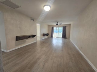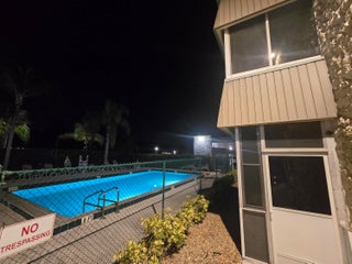 Welcome to all age meticulously maintained ground floor condo located directly across Veteran's park in desirable RPB. This unit is one-of-a-kind with a beautiful view of community heated all year round & illuminated at night swimming pool! Direct access to the pool gate from your screened balcony! Among many features & upgrades this condo offers fresh paint, newer modern laminate floors throughout, newer stainless steel kitchen appliances & front load W/D, newer wooden kitchen countertop, modern ceiling fans, completely redone master bathroom shower, wall tiles, both bathrooms floors, vanities and lights, tinted glass, BRAND NEW ROOF!The parking space is just few steps away from the screened balcony which locks inside out as well as seller's personal security cameras & condo assn's camera above the entrance & pool area for extra security. Each unit has a storage space in a designated secure storage room and gated/locked areas for bicycles. Very well maintained building with overflow overnight parking on each side of the building. The beautiful public Veteran's park across the street offers picnic areas, children's playground, a day cafe with outdoor tables and covered resting zones, fountains, weekend farmer's market - everything your family needs for daily recreational fun! Also within a walking distance to RPB Common's park which is super handy on major holidays when you can enjoy fireworks, entertainment without hassle of parking there. Prime location: close to 441 and Turnpike, restaurants, shopping, equestrian fields, hospitals and much more! Don't miss this amazing winter retreat or first-time buyer's dream home!