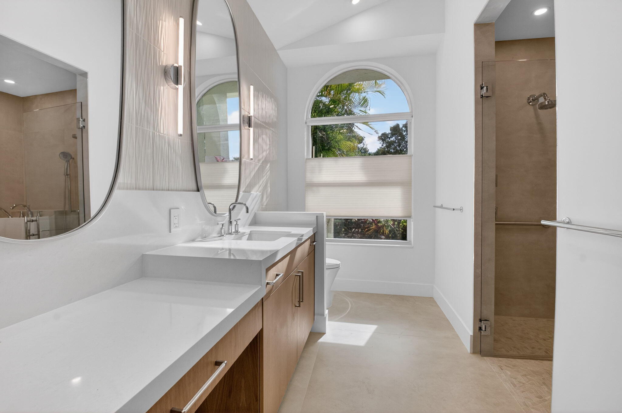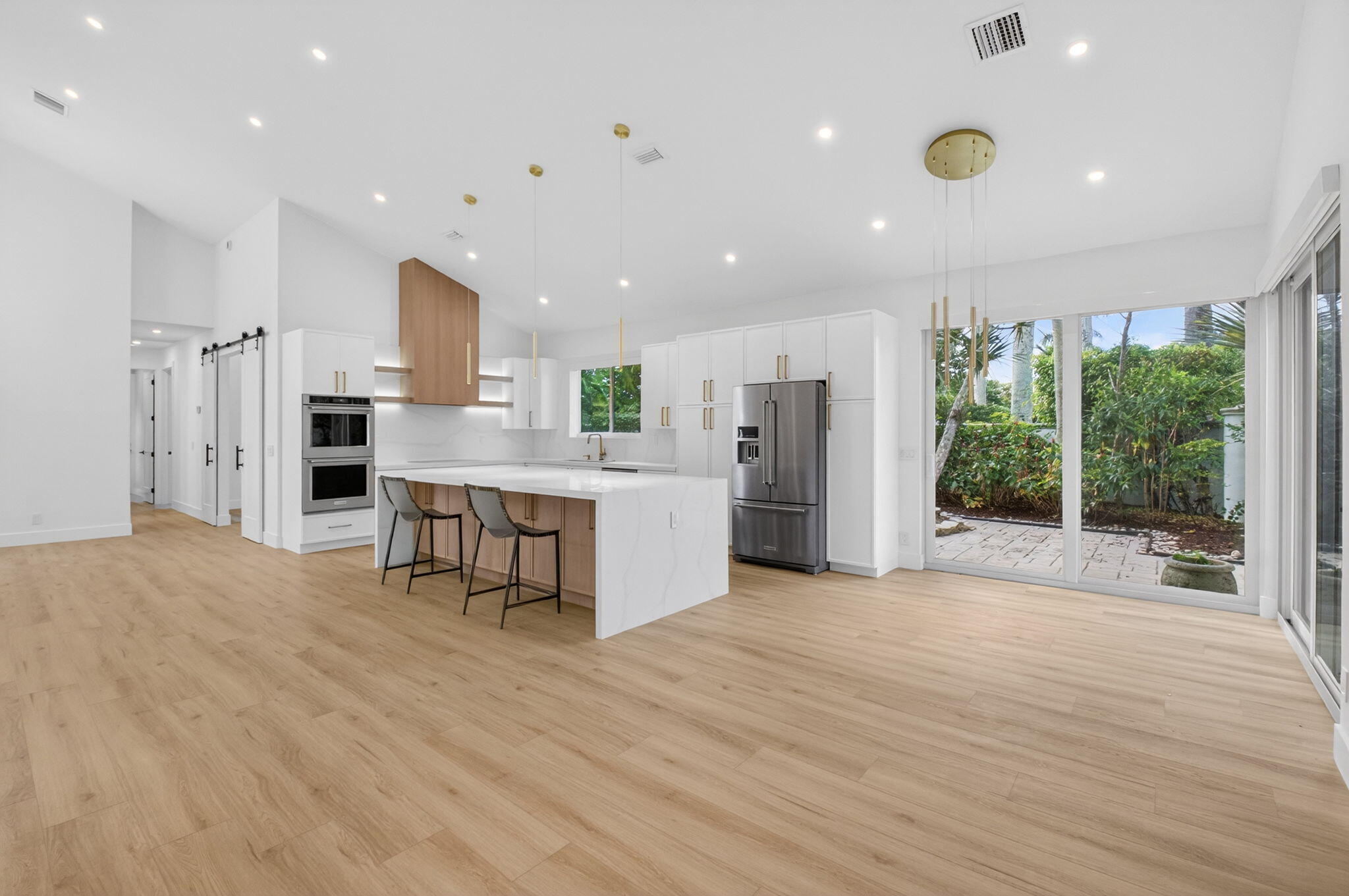 Experience modern luxury and effortless living in this beautifully renovated one-story home located in the desirable Village of Whisper Trace in Broken Sound Country Club. Offering 3 bedrooms, 2 bathrooms, and 1,841 square feet, this residence showcases stylish finishes, sophisticated design, and exceptional comfort. Step inside to soaring volume ceilings and an open great-room floor plan ideal for everyday living and entertaining. The stunning chef-inspired kitchen features a dramatic waterfall island, sleek white cabinetry, elegant gold hardware, double wall ovens, and electric window treatments throughout for convenience and style. The split bedroom layout provides privacy, while the primary suite offers a peaceful retreat with a spacious walk-in closet and a spa-like en suite bathwith separate soaking tub and glass-enclosed shower. Enjoy year-round outdoor living with a screened-in covered patio overlooking a serene fully enclosed backyard enhanced by mature tropical landscaping. Additional upgrades include impact windows and doors and a full-house generator, ensuring comfort and peace of mind. Available for annual rental with a Sports Membership, this exceptional home offers the best of South Florida living within the prestigious Broken Sound Country Club community.