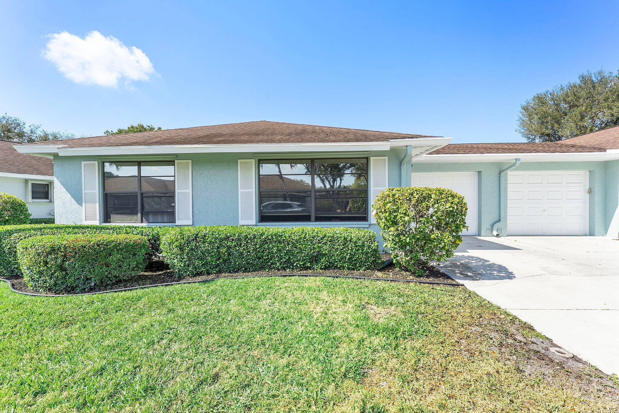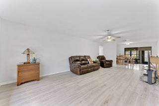 Welcome home to Bent Tree East, this quiet Villa community is nestled in the heart of Boynton Beach. This villa comes complete with a new roof by June of 2026, no assessment. New Vinly flooring as you enter along with all fresh paint inside the home. Attached one car garage that offers extra storage in the attic along with washer and dryer inside. Kitchen offers a large pantry and slider to your screened in patio. Large Master bedroom has 3 closets including one as a walk-in and separate bathroom. Guest bathroom has a walk-in shower with new tile. Hurricane protection with 100% panels. AC is 11/2021. HOA covers landscaping, pest control, water, sewer and trash, pool, cable and internet and COMPLETE roof coverage.