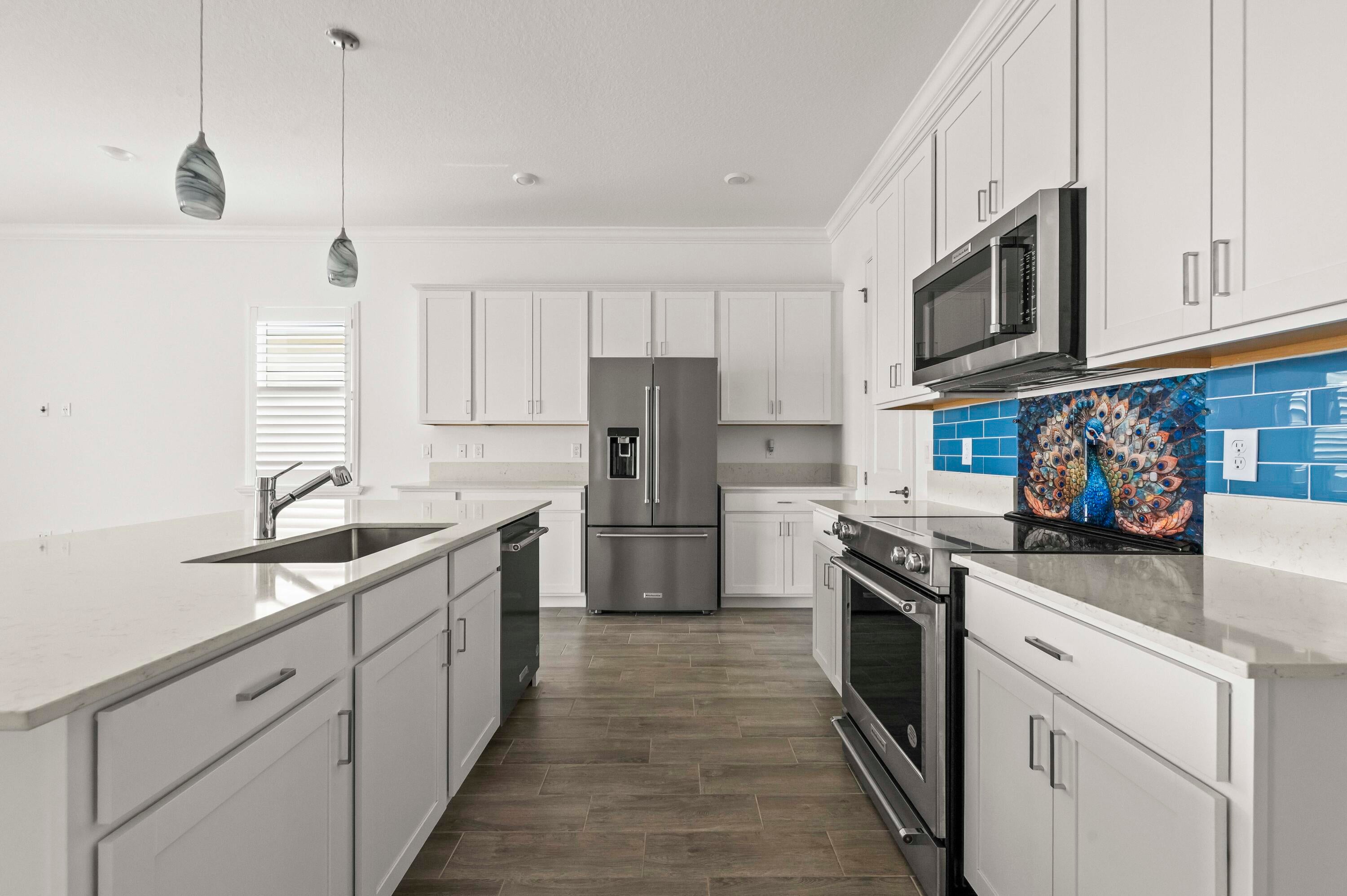 Experience the pinnacle of modern luxury in this stunning, 2024-built ''Key Largo'' model, situated within the highly coveted, 55+ community of Veranda Preserve. This pristine single-story residence boasts over 2,300 square feet of meticulously designed living space, featuring three spacious bedrooms--each with its own private en-suite bathroom--plus a versatile den and an additional powder room. From the moment you step through the grand foyer, you are greeted by volume ceilings and elegant ceramic tile flooring that flows seamlessly throughout the open-concept floor plan.At the heart of the home lies a chef's kitchen, anchored by a massive cook island with sleek countertops and premium stainless steel appliances. This culinary masterpiece overlooks the expansive Great Room and dining area, creating an inviting atmosphere for both intimate family dinners and large-scale entertaining. The glass windows and doors flood the interior with natural light, offering serene views of the lush preserve and neighborhood greenery. The split-bedroom layout ensures maximum privacy, with the opulent owner's suite serving as a secluded sanctuary complete with dual walk-in closets and a spa-inspired bathroom. Step outside to your private covered patio, the perfect spot for sipping your morning coffee while enjoying the tranquil Florida breeze. The lot offers plenty of room allowing you to create your own backyard oasis. Beyond your front door, Veranda Preserve provides a resort-style lifestyle tailored for active adults, featuring a world-class clubhouse, shimmering pool, pickleball and tennis courts, a fitness center, and a vibrant social calendar. With the added security of a gated entrance and the convenience of included lawn maintenance, this home offers the effortless, high-end lifestyle you've been searching for.