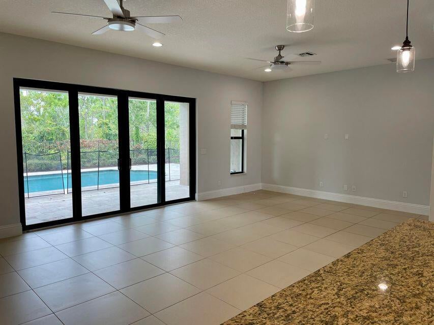 Well-maintained home in Tesoro Club. Two-story with open-concept great room plan plus den/office and loft, private pool, and side-entry 2.5-car garage. Chef's kitchen with granite counters, solid wood cabinets, and GE Monogram appliances with induction cooktop. Private dining room with tray ceiling and 10-ft wet bar. Four bedrooms with ensuite baths plus cabana-style pool bath; den/office can serve as a 5th bedroom. Large primary suite with two walk-in closets, garden tub and separate glass shower. Gated community with 24/7 roving security. Convenient access to the Turnpike, Publix, restaurants, and the new Florida Coast Medical Center. Tenants may join Tesoro Club amenities via available memberships. Annual lease; first, last & security required; no pets.