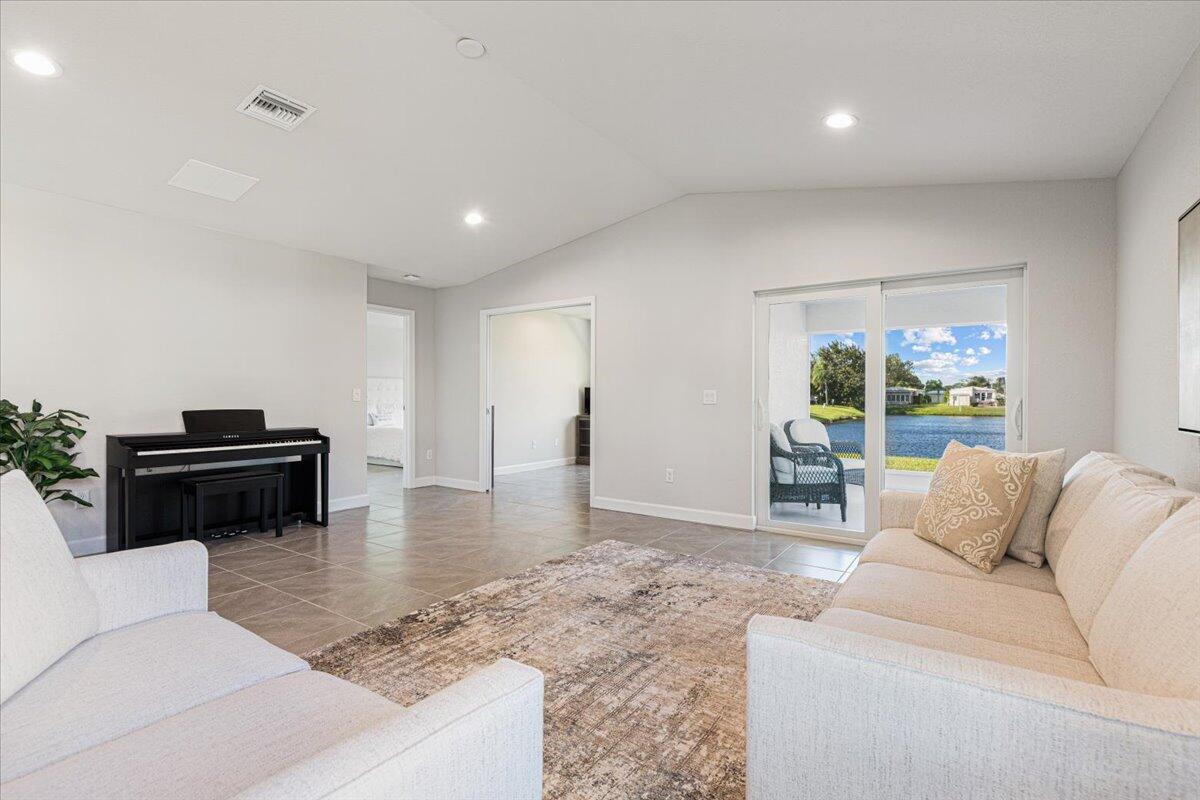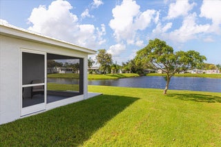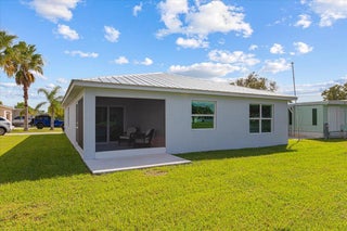 Spanish Lakes Riverfront is a vibrant and welcoming 55+ community known for its active lifestyle and warm, friendly atmosphere. Tucked away on a quiet cul-de-sac, this pristine and meticulously maintained concrete block home offers a beautiful lake view and is truly move-in ready. This charming 2-rooms, 1.5-bath residence with a 1-car garage showcases thoughtful details throughout, including a durable metal roof, impact windows, stainless steel appliances, granite countertops, and elegant Hunter Douglas shades. The screened patio creates the perfect setting to relax and unwind while enjoying peaceful lake views and gentle breezes. Recent upgrades include new toilets with 2- and 5-year warranties and a newer refrigerator for added peace of mind. Designed with comfort and security in mind.The home features a fire alarm system, a tankless water heater, and an A/C closet in the garage for added functionality. Best of all, there are no HOA fees. Residents enjoy resort-style amenities included in the lot rent, such as heated pools and hot tubs, a grand clubhouse, library, fitness center with sauna, lounge with bar, card rooms, tennis, pickleball, shuffleboard, bocce, fishing, and more. There is also a river boat ramp, dock access, and long-term boat and RV storage available.This is a wonderful opportunity to embrace a serene lakefront setting while enjoying an active, carefree lifestyle in one of the area's most desirable 55+ communities. Come discover the charm of Spanish Lakes Riverfront and begin your next beautiful chapter.