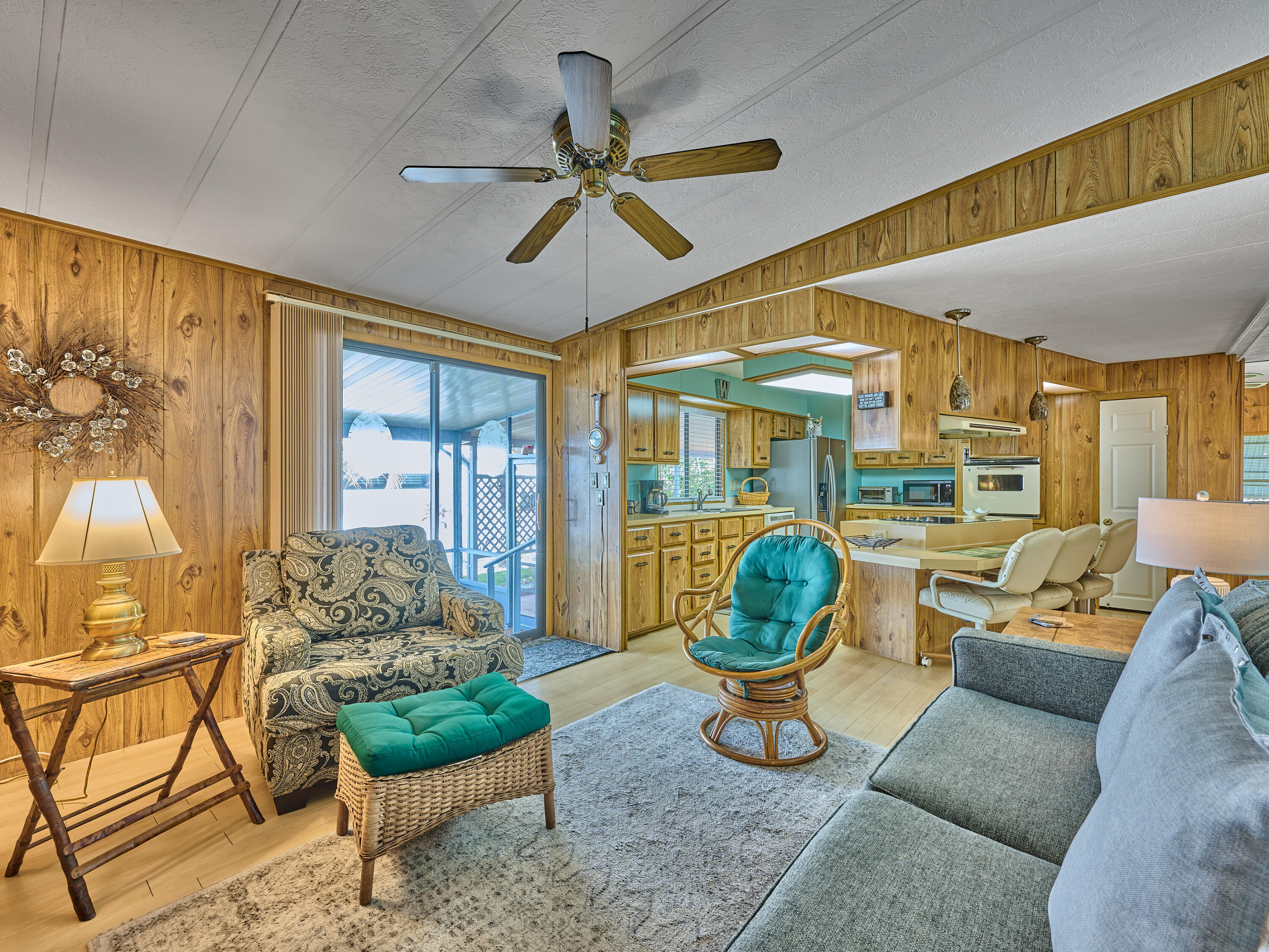 Much sought after Prestige Model Manufactured Home in Cambridge, 55+ community in Hobe Sound. 2 Bedrm/2 Bath + Family Room - Wide Open Feel!! Large sun filled LR flows easily into the open Kitchen w center cook island & Family Room w Wet Bar. The Master Bedrm is large & light & Bright w ensuite bathrm w step in shower, soaking tub, dual sinks & walk in closet. The 2nd Bedrm is a good size also w ensuite bath. The home also has a convenient office nook. Thru a slider you enter a large screen room w a Shed/Laundry/storage room. So many areas in the home to enjoy & perfect for entertaining friends & family. Membrane roof 2016, A/C 2020, Fridge 2025, washer 2019, Dryer 2023. Cambridge is an active community w Clubhouse, heated pool, gym, shuffleboard etc. YOU OWN THE LAND - ALL PETS OK.