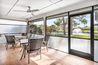 Welcome to your turnkey villa in the coveted gated community at Eastpointe Country Club. This meticulously maintained 2 bedroom, 2 bathroom home offers calming lake views and a wonderful floor plan. Enjoy relaxing or entertaining on the screened-in porch, or activities in the private yard. One of the best features of the home is the spacious primary suite, featuring an additional huge walk-in closet and nicely renovated bathroom. The kitchen boasts newer stainless-steel appliances, and the home includes a 4-year-old A/C unit and a 6-year-old water heater. The owner just installed a new roof last year. This home is being offered Fully furnished and move-in turn key ready: this villa includes furniture, bedding, kitchenware, and more, perfect for investors or seasonal residents.No waiting period to rent makes it an excellent income-producing opportunity. Eastpointe is a golfer's paradise, offering two Fazio designed championship 18-hole golf courses. The stunning brand new clubhouse has a full-service restaurant, two resort style pools, a state-of-the-art fitness center, tennis, pickleball, and more! Don't miss this incredible opportunity to own a home in one of Palm Beach County's premier communities.