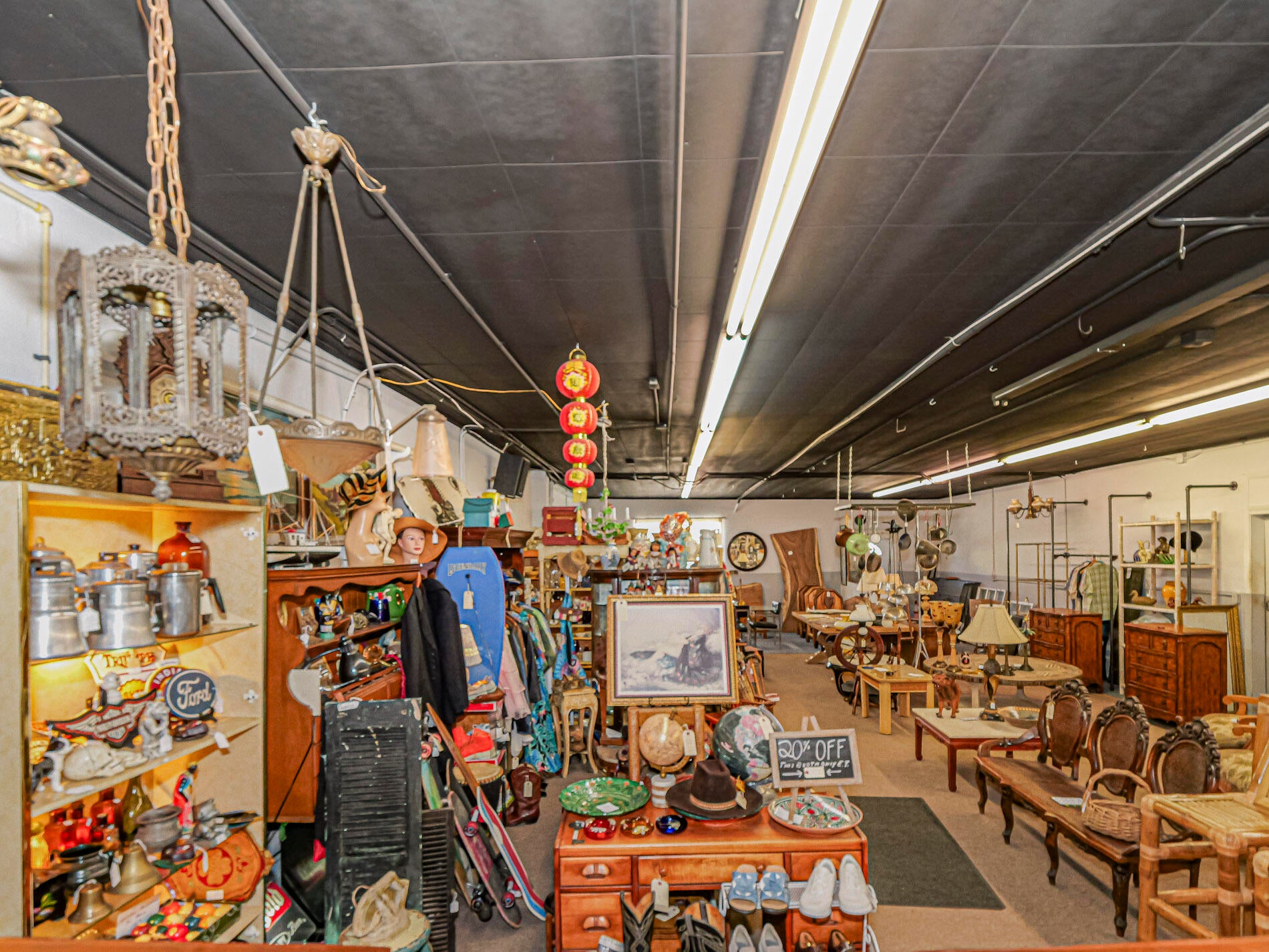Turnkey established business of vintage, modern decor and furnishings, with custom hand-crafted items. Located in 4,600+ sq. ft., there are consignors who pay booth spaces. Has a garage in back, well ventilated, could be for craftsman / artist. Extra storage space. Shop runs itself. Approximately 50k in inventory. Fantastic location and great lease terms.