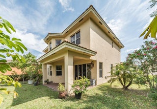Available short-term only (6 months). Elegant lakefront home on a quiet cul-de-sac, ideal for relocation, executive housing, or seasonal stay. This light-filled residence features a spacious eat-in kitchen with granite countertops and stainless-steel appliances, den/office, large loft, and a second-floor primary suite with two generous walk-in closets. Enjoy a gorgeous, covered balcony upstairs and a covered patio overlooking lush tropical landscaping with serene lake views. Located in a gated community offering clubhouse, pool, fitness center, and tennis courts. Conveniently just minutes to the beaches, dining, and shopping. Available now.