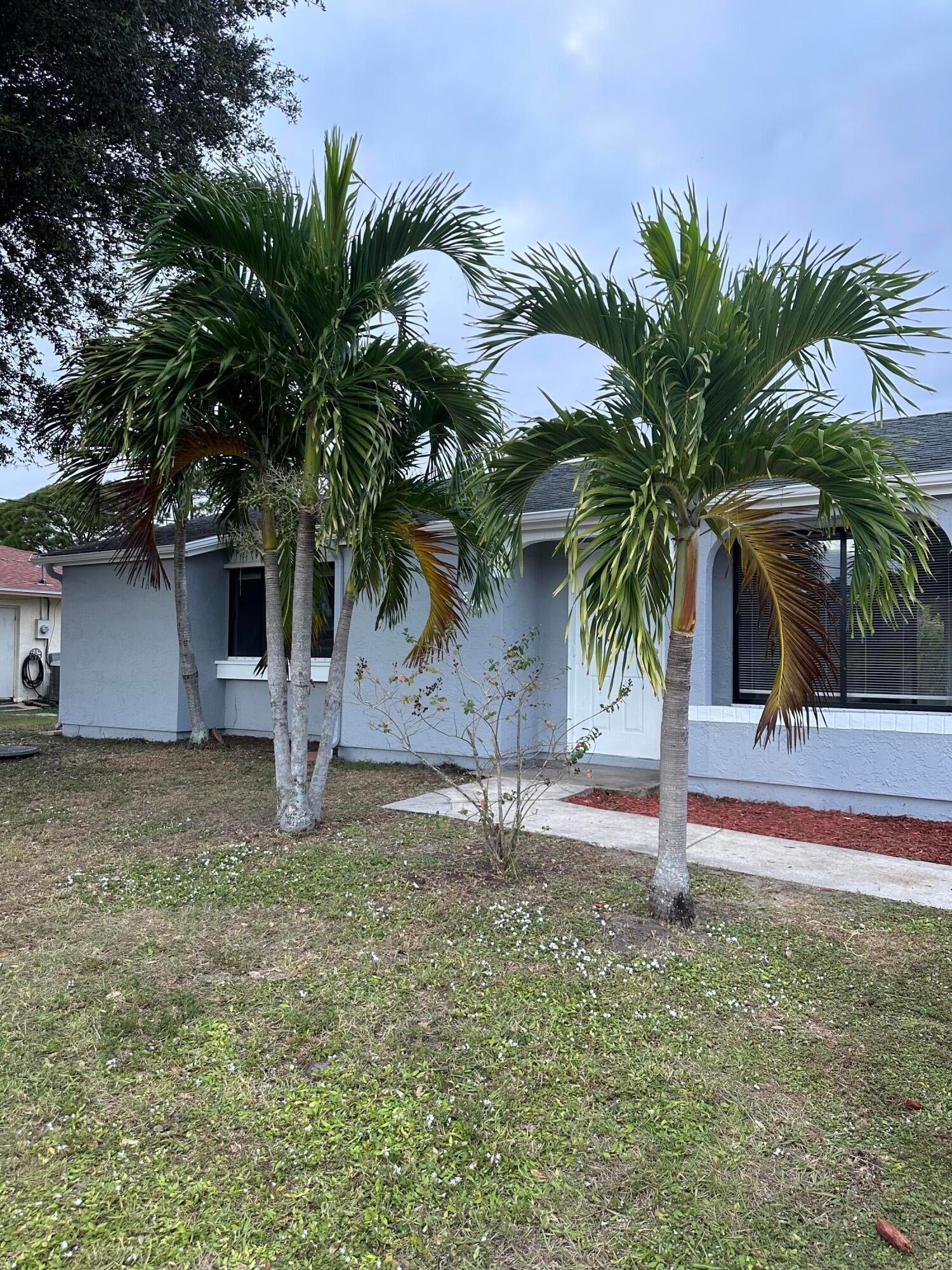 Discover this cozy and clean 3-bedroom, 2-bathroom single-family home, perfectly situated in the heart of Port St. Lucie. This inviting property features newer flooring, a beautifully remodeled kitchen, fresh paint, and updated baseboards, giving the home a modern yet comfortable feel. Enjoy the Florida lifestyle with a fully fenced, oversized backyard and a large screened-in patio, perfect for relaxing or entertaining. Additional highlights include a half-garage conversion offering extra storage and a utility room with air conditioning. The freshly painted exterior adds to this home's curb appeal. Lawn care is included, making maintenance a breeze. Renters must meet income requirements of 2.5 times the rent, have a good rental history, and no prior evictions. Qualified Candidate Only!