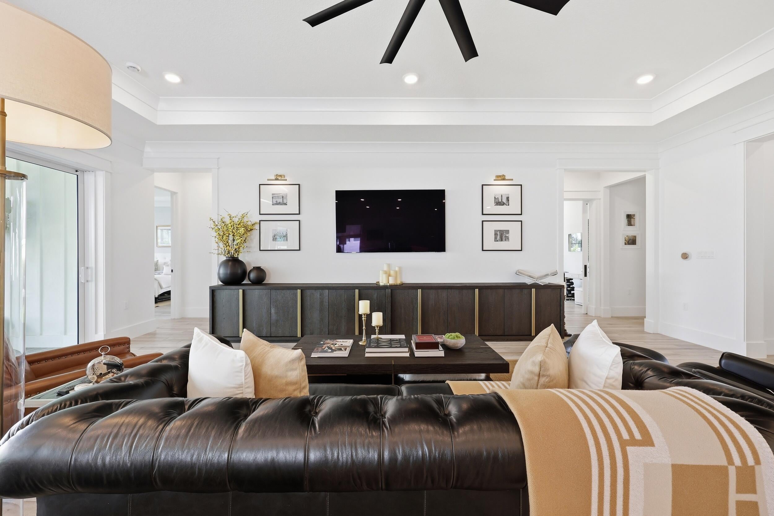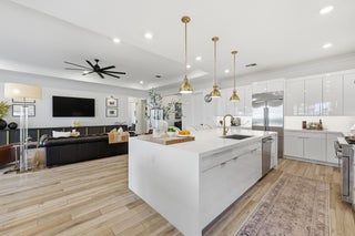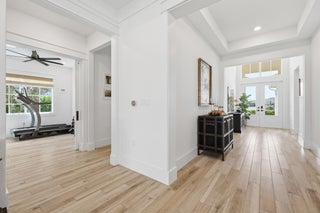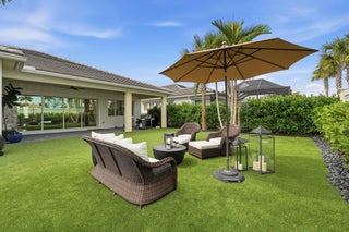 $20,000 seller concession. Beautifully appointed open-concept home sits on a premier privacy corner lot with a generous yard and Coastal exterior. A spacious foyer welcomes you with tray ceilings, custom trim, and crown molding throughout the main living areas. The chef's kitchen shines with an oversized 2'' quartz island, coffee bar, open shelving, ample storage, and upgraded Monogram appliances. Step outside to your private backyard oasis--fully fenced with low-maintenance artificial turf, curated landscaping, hardscape rock accents, landscape lighting, and an expansive patio built for entertaining. The Primary Suite overlooks the manicured backyard and features a spa-like bath with a Restoration Hardware vanity, freestanding tub, oversized curbless shower, and large walk-in closetThis beautifully appointed open-concept home sits on a premier privacy corner lot with a generous yard and striking Coastal exterior. A spacious foyer welcomes you with tray ceilings, custom trim, and crown molding throughout the main living areas. The chef's kitchen shines with an oversized 2'' quartz island, coffee bar, open shelving, ample storage, and upgraded Monogram appliances. Step outside to your private backyard oasis--fully fenced with low-maintenance artificial turf, curated landscaping, hardscape rock accents, landscape lighting, and an expansive patio built for entertaining. The Primary Suite overlooks the manicured backyard and features a spa-like bath with a Restoration Hardware vanity, freestanding tub, oversized curbless shower, and large walk-in closet. Two guest bedrooms, a dedicated office, 3-car garage, and a whole-home Generac generator complete the package--plus the resort-style pool and clubhouse are directly across the street. Other amenities include, Business center, café/restaurant, fitness center, pickle ball, golf course, tennis, and more. Close walkways to pool, and Publix. The town center is opening up soon. It's going to be amazing. A new Publix, Walgreens, tons of shops, restaurants and all within walking distance. Golf cart paths are everywhere...don't even need your car. Weather vane in back yard, credenza and light fixtures in living room, refrigerator in Garage do not convey