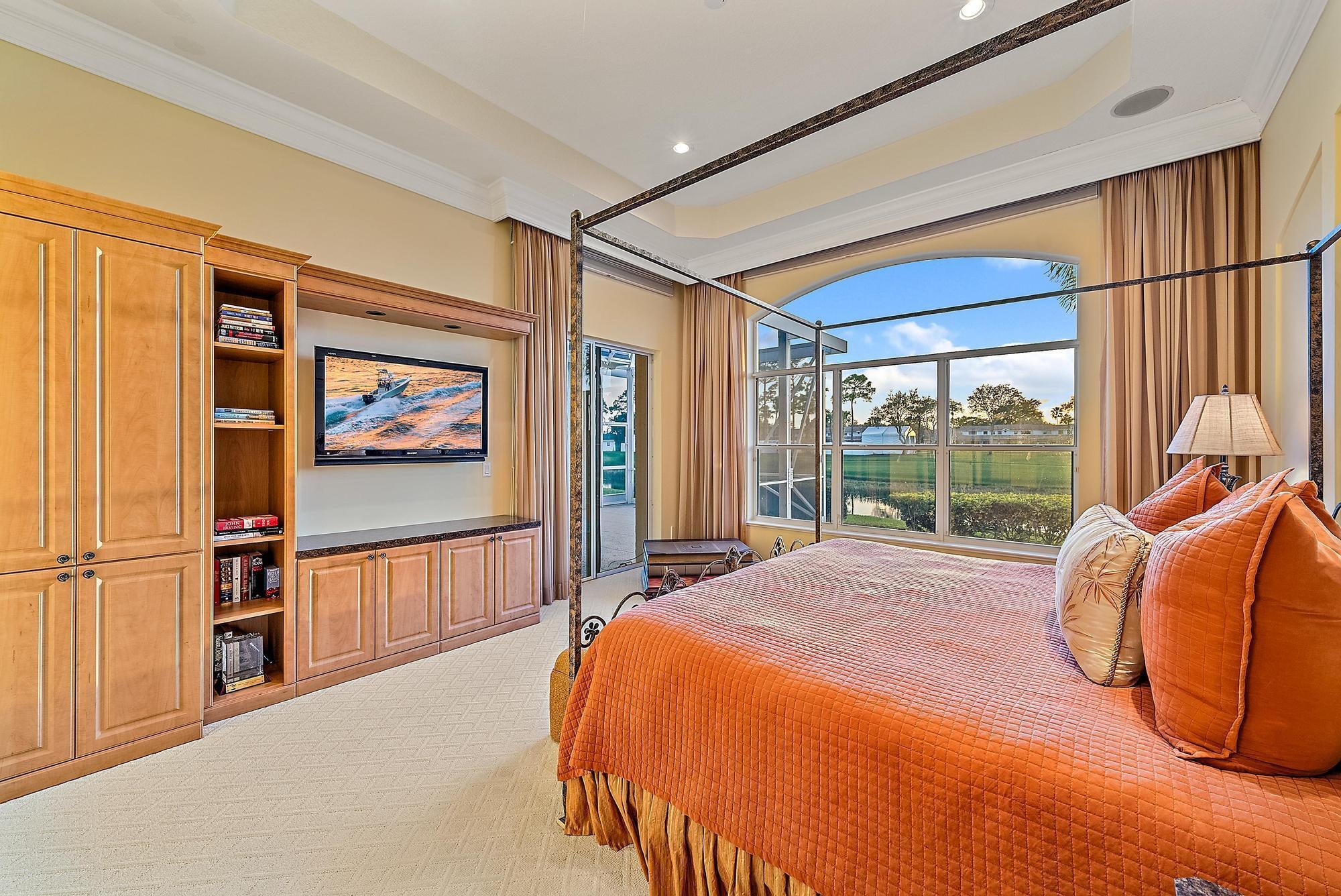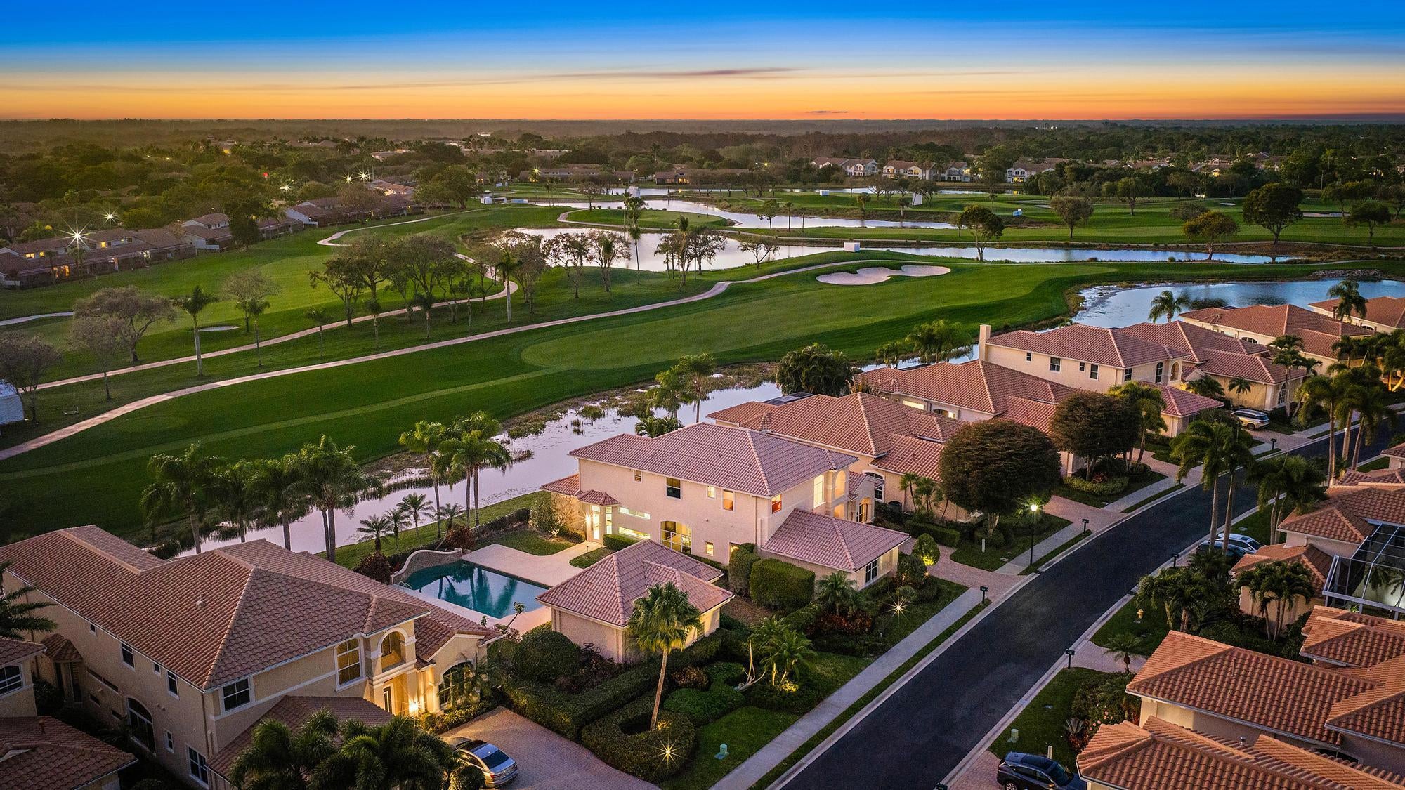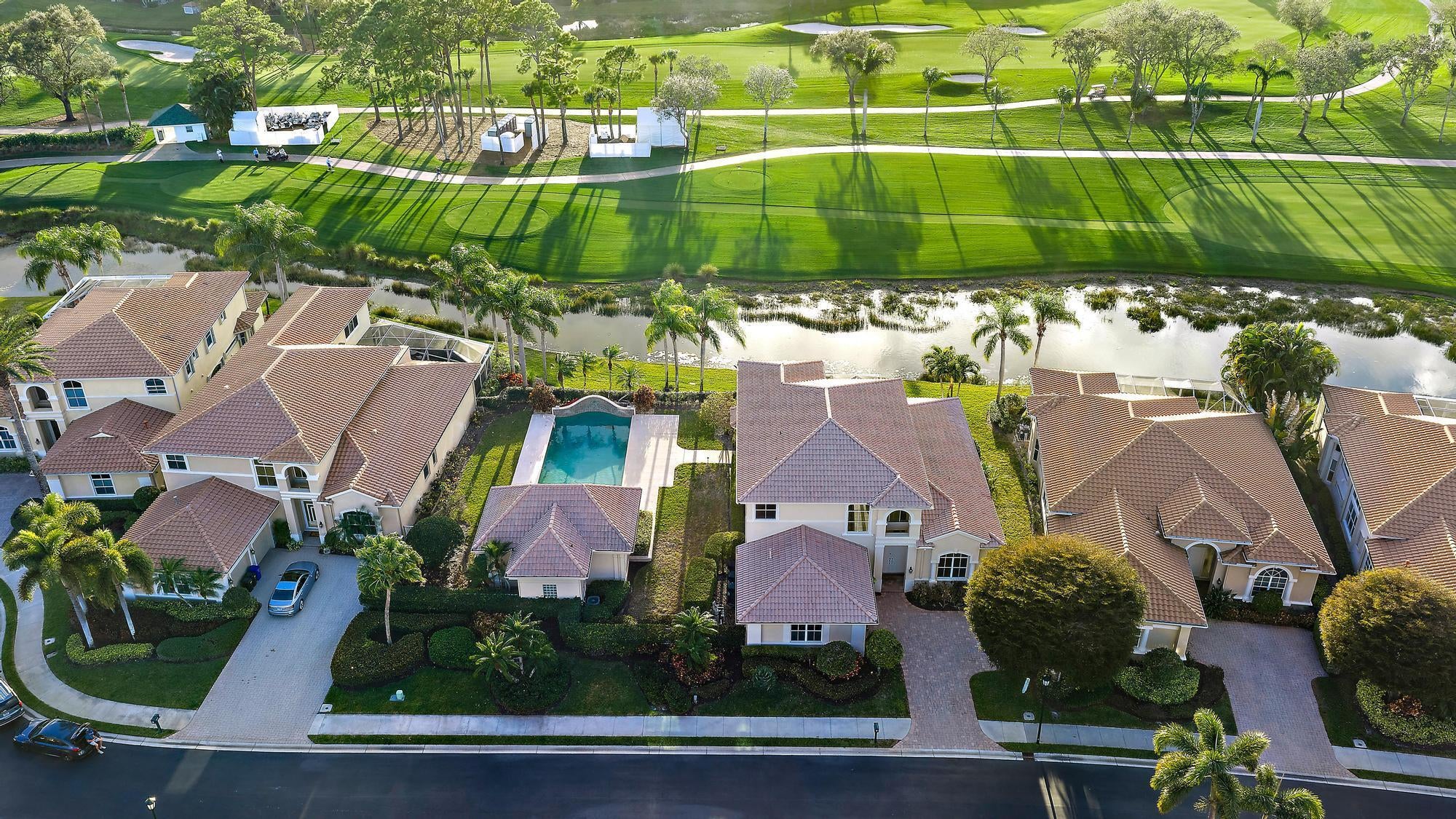 Welcome to one of the most exclusive opportunities in all of PGA National -- the only double lot available in the prestigious, double-gated community of Grand Cay. Situated on an oversized .33-acre homesite with sweeping golf and sunset views, this exceptional estate offers over 4,423 square feet of living space in the main residence, plus a private 570-square-foot guest house, making it one of the most unique properties within a community of more than 4,500 homes.From the moment you enter, you are greeted by soaring 20+ foot ceilings, striking architectural detail, and a grand sense of scale. The main home features four bedrooms, four full bathrooms, one half bath, a dedicated office, and a spacious media room or den, offering flexibility for both everyday living and entertaining.The detached guest house includes a bedroom, full bathroom, kitchenette, and living area--perfect for extended family, guests, live-in support, or a private retreat. Positioned along the Nicklaus-designed 16th hole of the iconic Bear Trap, the home captures spectacular west-facing sunset views from the second-floor balcony. Whether enjoying a peaceful afternoon watching golfers pass through or experiencing the excitement of the Cognizant Classic from your own backyard vantage point, the setting is truly unmatched. Grand Cay is an intimate enclave of just 42 estate homes, offering lake and championship golf course views, a private community pool, fitness clubhouse, and 24-hour manned security behind double gates. Residents enjoy privacy and prestige within one of Palm Beach Gardens' most desirable addresses. Living in PGA National means embracing the ultimate South Florida lifestyle. The community offers five championship golf courses, world-class tennis and pickleball, a luxury spa, resort-style pools, and seven on-site restaurants including the renowned Butcher's Club. Membership is optional, providing flexibility to enjoy the resort amenities at your discretion. Ideally located just minutes from luxury shopping at The Gardens Mall, top-rated dining, beautiful beaches, boating, Downtown West Palm Beach, Palm Beach Island, and Palm Beach International Airport, this home also sits near some of the area's most respected private schools including The Benjamin School, Oxbridge Academy, The King's Academy, and Rosarian Academy. This is more than a home -- it is a rare opportunity to own one of the most distinctive and private properties in PGA National, offering space, views, security, and the very best of the Florida lifestyle.