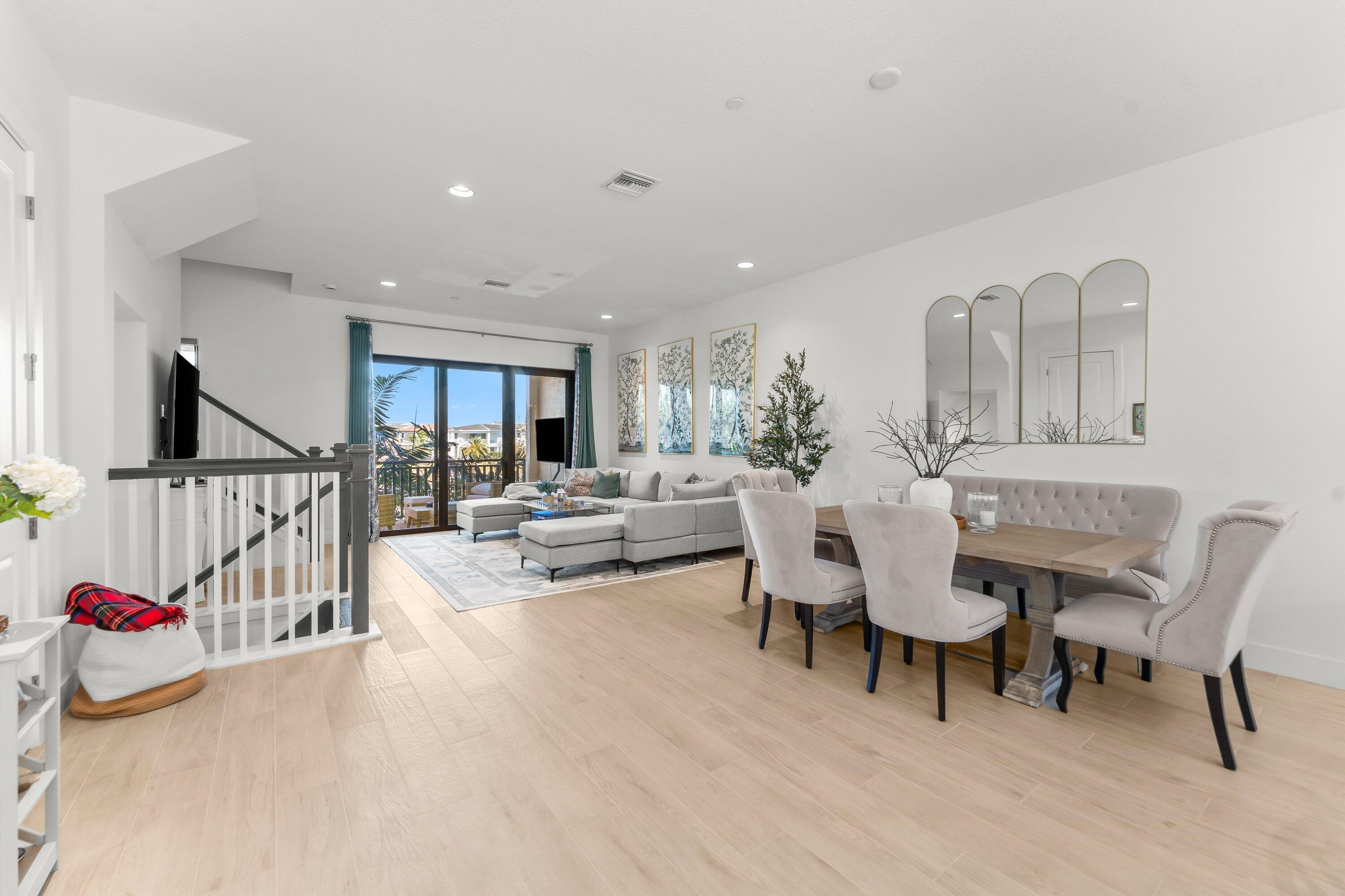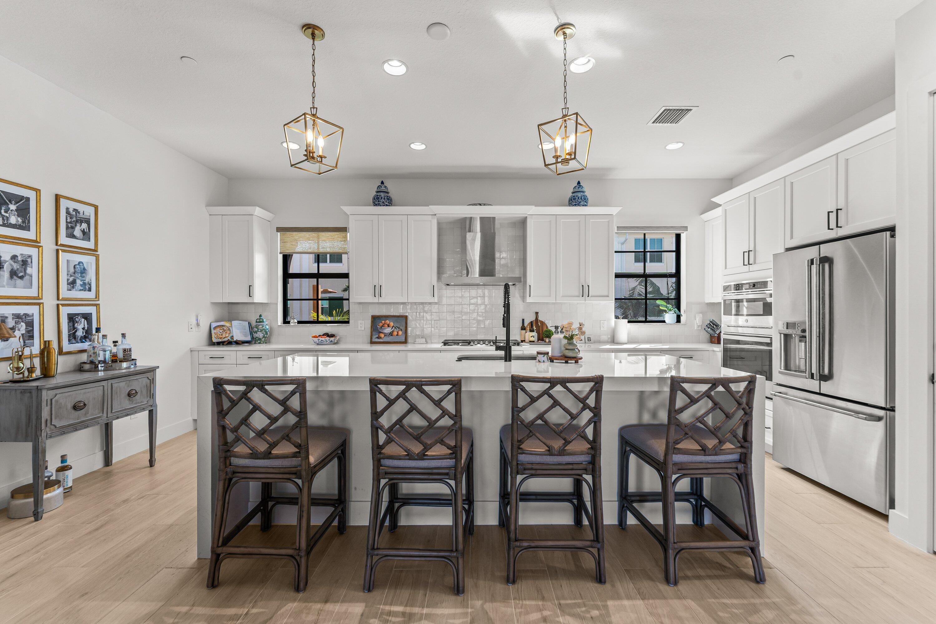 This 2023 build offers beautiful and serene lake views. Spacious, light and bright residence boasts 3 bedrooms, a den ( or 4th bedroom), 3.5 baths, 2 car garage. ample storage and a large private balcony and porch. Notice the luxurious kitchen with white panel cabinetry, quartz countertops, a gas wall oven, cooktop and a dine in kitchen island. All of which contribute to its exceptional energy efficiency. Upon entering this stunning Spanish-style 3 story townhome, you will appreciate the numerous upgrades including impact windows. The HOA covers basic cable, internet and lawn care. The Alton neighborhood features a clubhouse, basketball, tennis, pickleball, volleyball, dog park, playground, pool and fitness center.Alton offers the best dining, health and wellness options within walking distance. Home also includes security system ( to be paid by tenant), EV charger and full house water filtration and softener system.