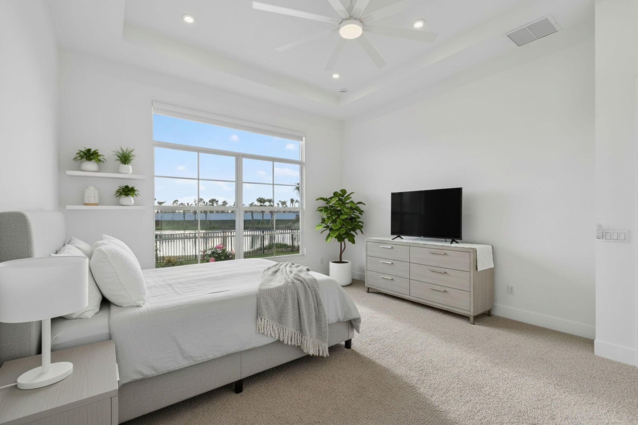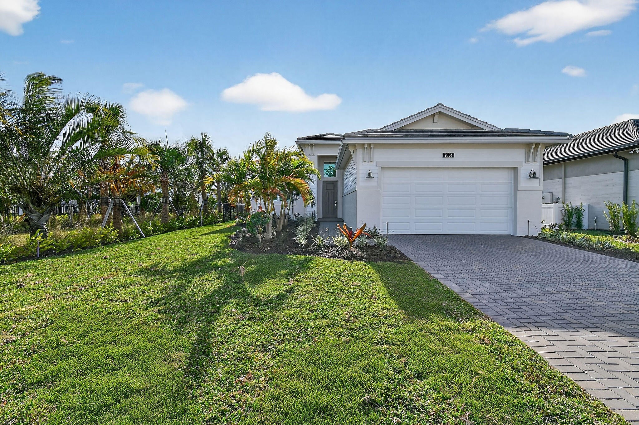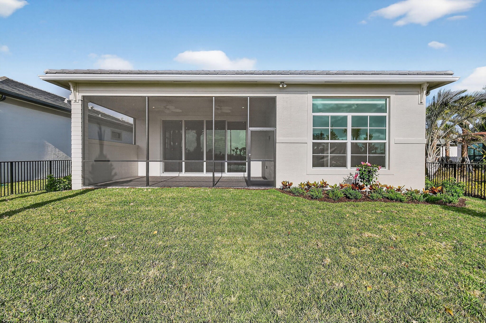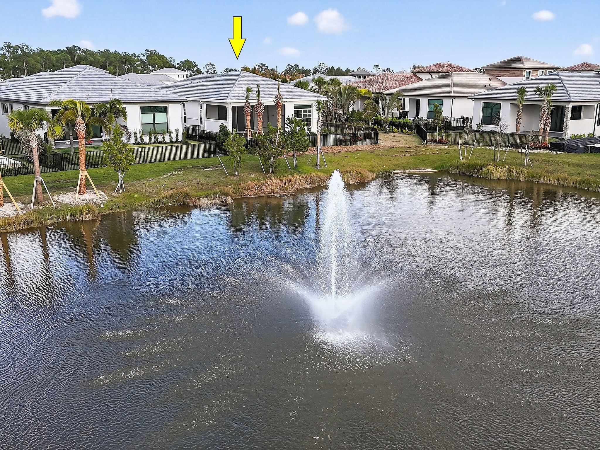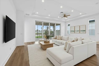 This stunning new construction, single-story Lila model in L'Ambiance sits on a premium homesite with direct lake and fountain views! A large side easement provides added privacy and enhanced landscaping unique to this property. Step through the grand foyer with soaring 16-foot ceilings into a thoughtfully designed layout featuring 3 bedrooms, 3 bathrooms, and a versatile clubroom (optional 4th bedroom). The gourmet kitchen showcases elevated cabinetry, quartz countertops, custom backsplash, and grand quartz island ideal for entertaining. The home features an expanded and screened-in lanai perfect for enjoying your lakefront view. The primary suite also offers serene lake views and a spa-like bathroom. The home is ready to move into with roller shades, stylish lighting, ceiling fans andepoxy garage flooring. The laundry room is beautifully finished with quartz counters, cabinetry, and custom backsplash. Residents of L'Ambiance enjoy gated entry and exclusive access to the new Great Egret Clubhouse directly across the street, featuring a full-service restaurant and poolside bar, three pools, fitness center, covered playgrounds, indoor and outdoor social spaces, sports courts, and more.