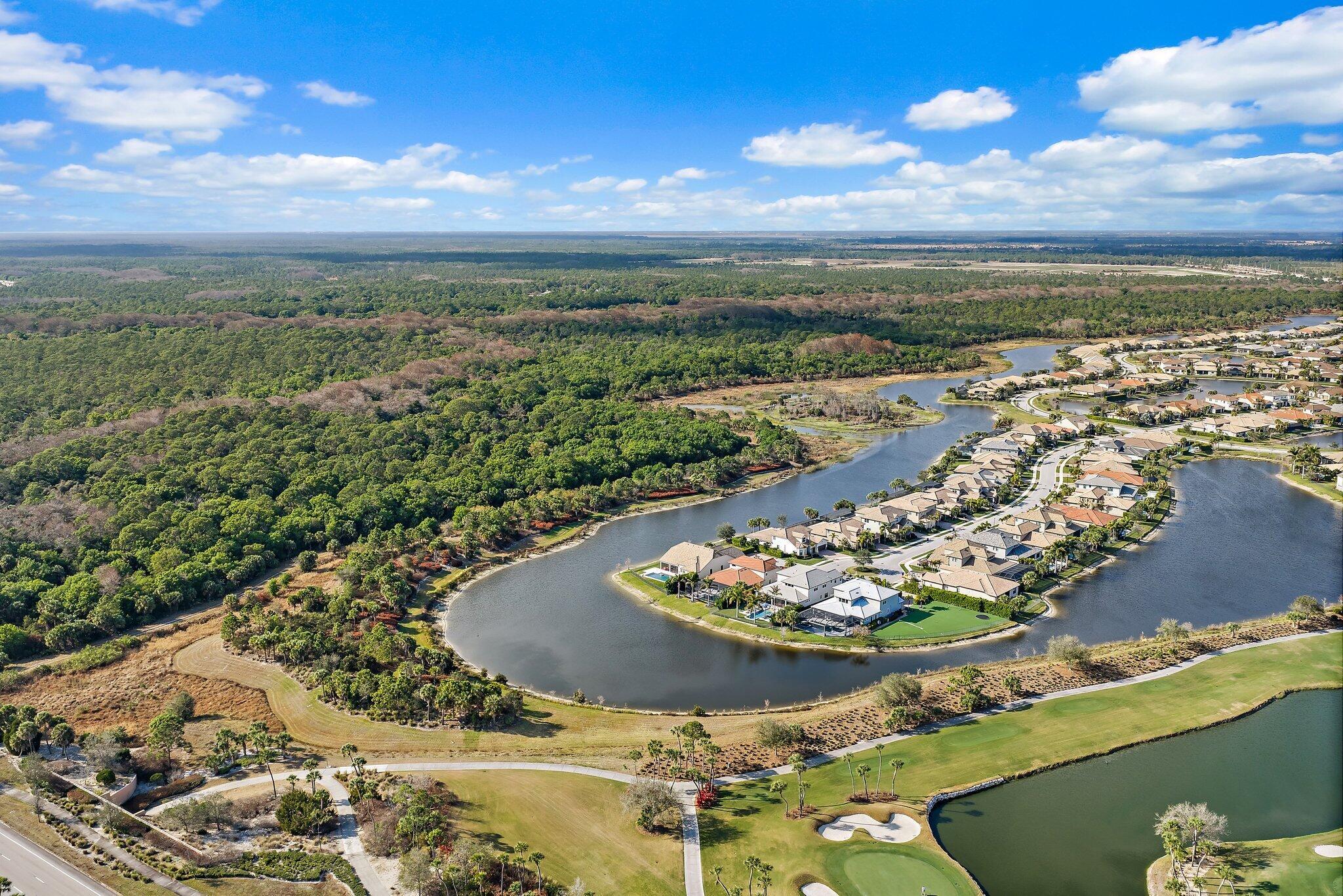 To mark the reef lying off the Jupiter Inlet, Congress in 1853 appropriated $35,000 to construct a lighthouse. At the top of the Jupiter Lighthouse, you can see the Loxahatchee River.