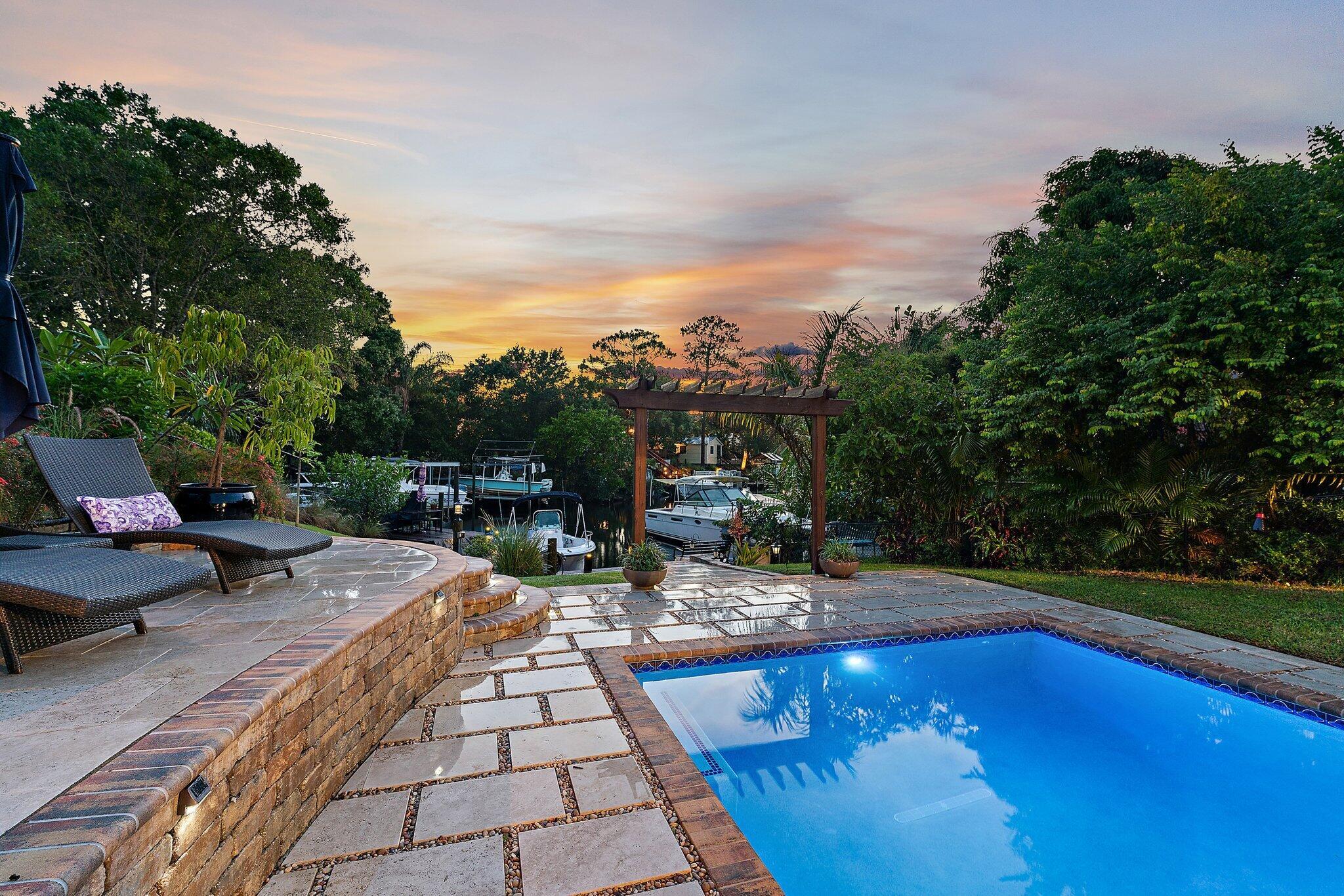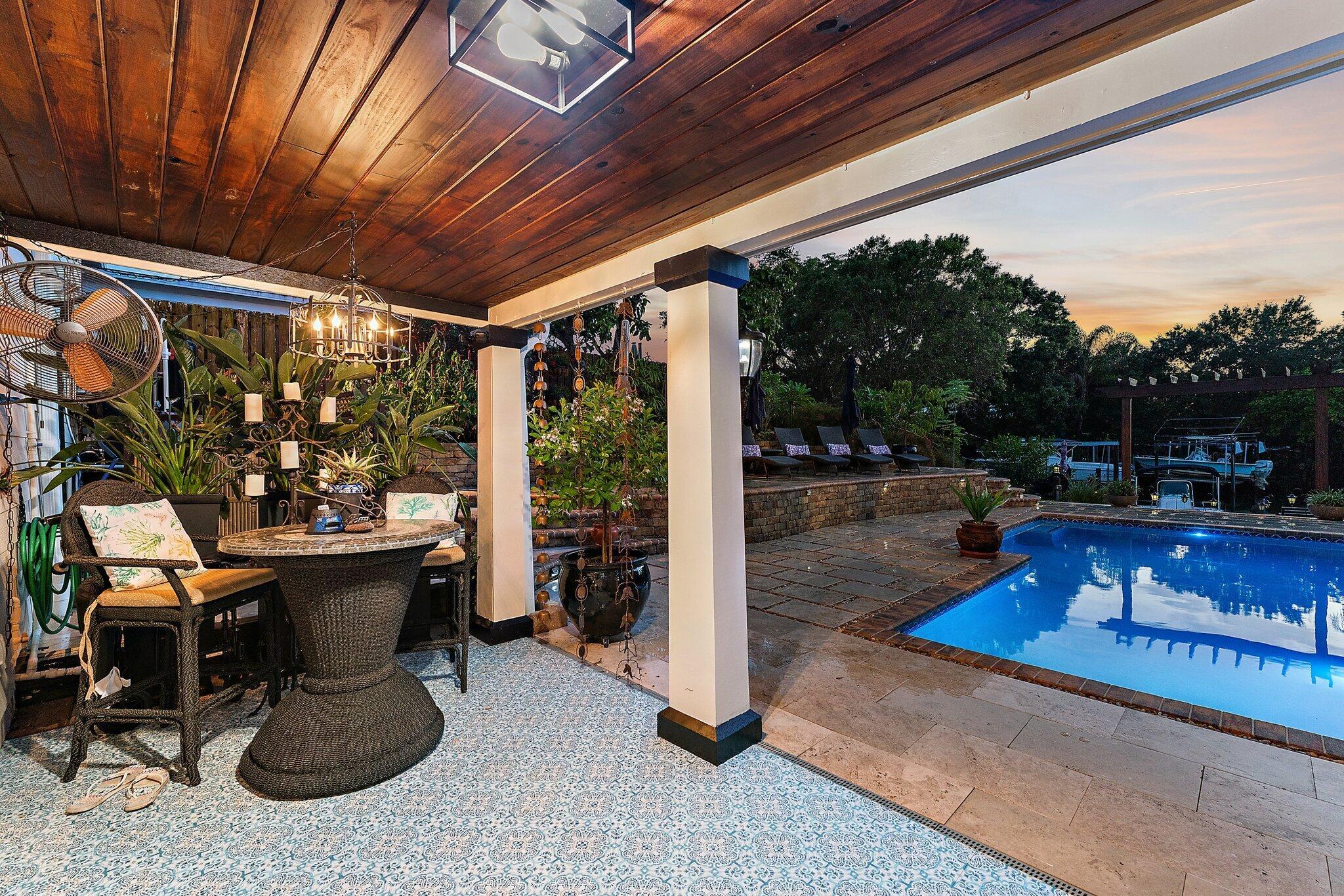 BRAND NEW ROOF - NO FIXED BRIDGES. Experience true Florida luxury in this stunning Mediterranean-style waterfront home, perfectly combining elegance, comfort, and functionality. A rare find, this home features a true basement that opens directly to your new saltwater pool with a heater--perfect for those cooler Florida evenings. Embrace the ease of direct ocean access with NO FIXED BRIDGES--a boater's paradise right in your backyard! Inside, you'll find 4 spacious bedrooms, an office and 3 beautifully appointed bathrooms, along with two expansive living areas that offer the perfect setting for both relaxation and entertaining. The gourmet kitchen is a chef's delight, boasting high-end finishes and top-quality appliances for effortless culinary creativity. So Many Upgrades!!