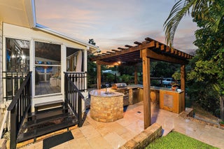 Covered Balcony, Custom Lighting, Fence, Open Patio, Summer Kitchen, Fruit Tree(s), Covered Patio, Screened Balcony