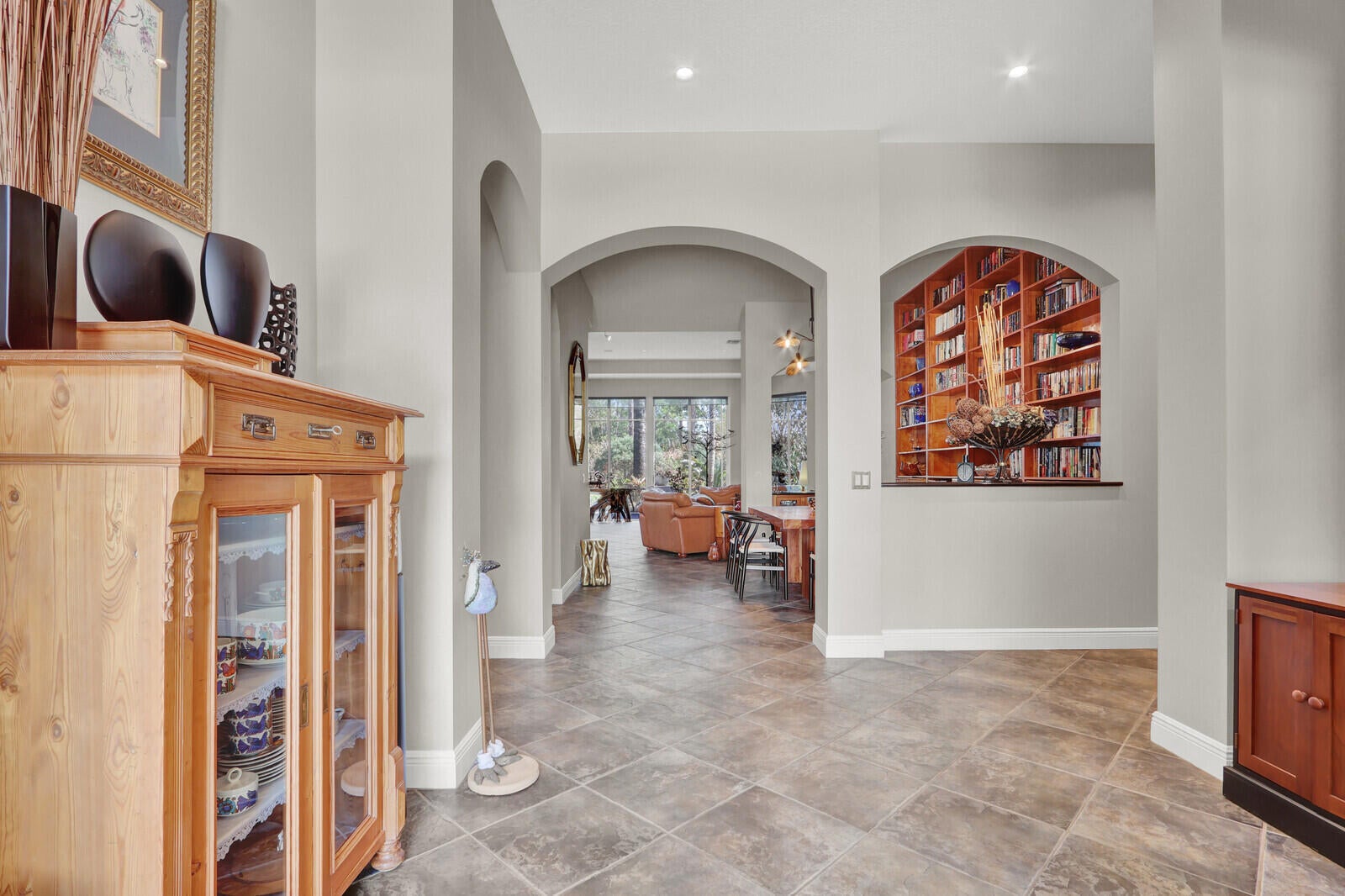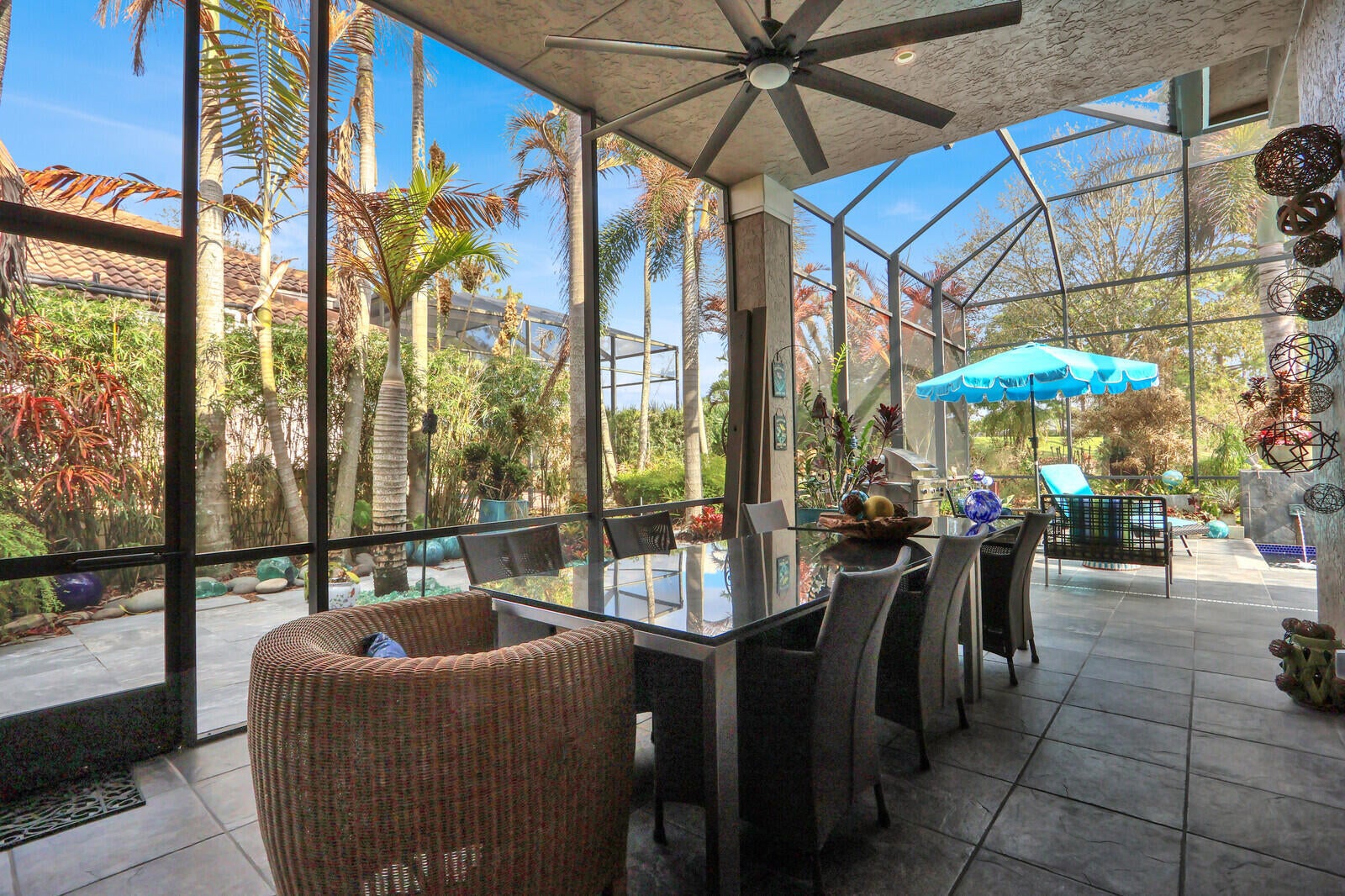 Welcome to an extraordinary residence in Cypress Point, one of the most sought-after neighborhoods within PGA Village--where luxury, privacy, and resort-style living come together in perfect harmony. A BACKYARD OASIS LIKE NO OTHER: Step outside to your own private resort-style retreat. The breathtaking pool features a stunning pebble finish, glistening tile accents, elegant fountains, and a beautiful tile deck. A marble walkway meanders gracefully through lush, exotic tropical landscaping, creating a serene and secluded escape. With expansive covered patio areas, a screened lounging space, and an additional awning for extended shade, this outdoor oasis is designed for both entertaining and tranquil relaxation. Every inch reflects the owners' pride and meticulous attention to detail.Refined Interior Craftsmanship & Modern Design: Inside, quality craftsmanship and distinctive style shine throughout this 3-bedroom + den, 2.5-bath home. 18" slate tile floors in the main living areas Warm bamboo wood flooring in the bedrooms Solid 6-panel wood doors and detailed wood trim Floor-to-ceiling built-in bookshelves A one-of-a-kind built-in glassware cabinet in the dining area with granite countertop and glass doors The chef's kitchen is both beautiful and functional, featuring top-of-the-line Viking and Thermador appliances, rich wood cabinetry with abundant drawers, and gleaming granite countertops. The modern aesthetic continues throughout the home, complemented by upgraded bath fixtures and high-quality finishes that reflect thoughtful design at every turn. Prime Location with Privacy: Situated on a private corner lot backing to the golf course, this home offers exceptional privacy while remaining in the heart of the community--close to the gate and clubhouse, yet peacefully tucked away from I-95. A short ride brings you to the Island Club and all community amenities. Residents of PGA Village enjoy access to the clubhouse featuring a resort-style pool, fitness center, tennis, pickleball, and a full calendar of social activities. Golf enthusiasts will appreciate three world-class PGA golf courses and The Legacy Golf & Tennis Club, a premier private club. Just outside the gates, you'll find dining, shopping, the New York Mets spring training facility, and all essentials for daily living. Plus, you're only a short drive from some of Florida's most beautiful beaches. Some furnishings are negotiable, making this exceptional property even more enticing. This is more than a home--it's a lifestyle.