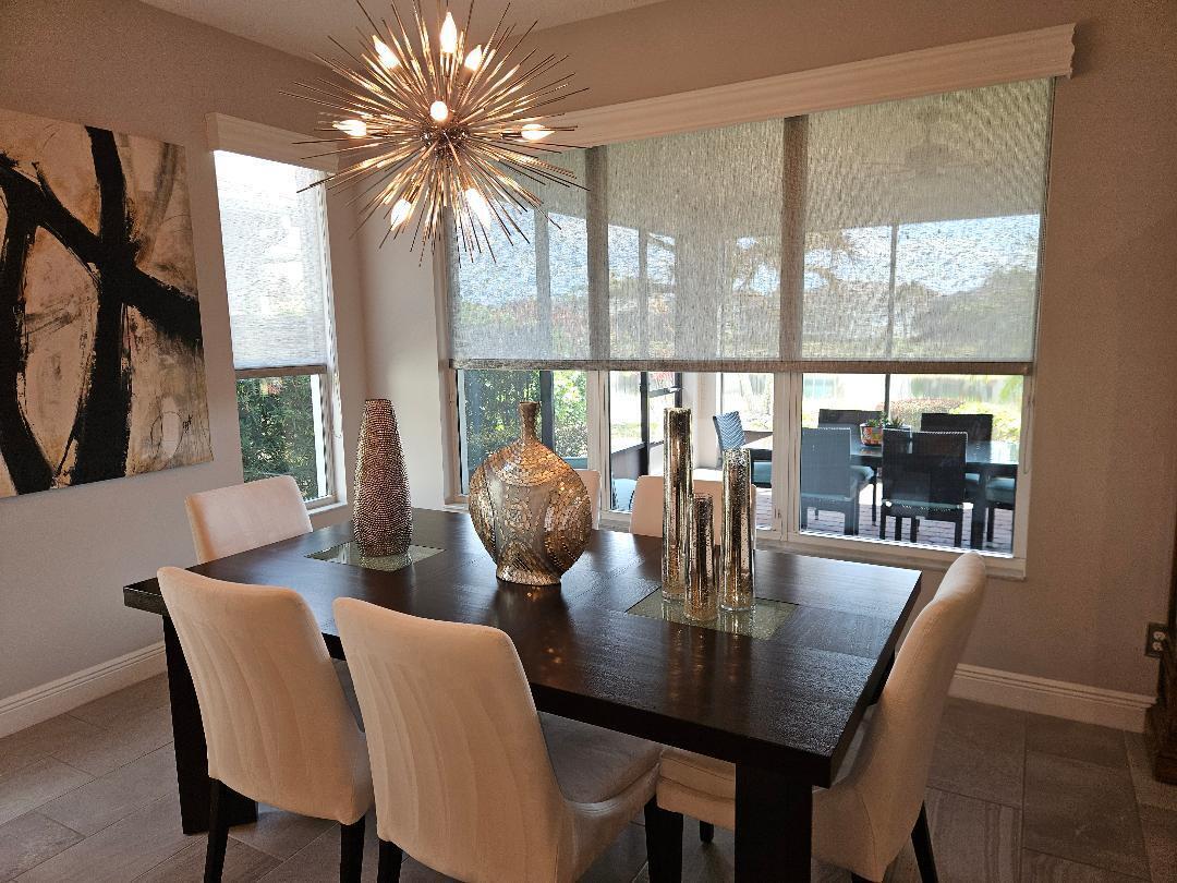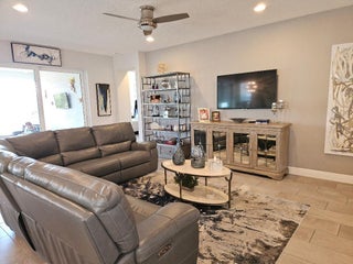 This is truly a MUST-SEE LAKEFRONT luxury home which shows like a model its a home you would see in the finest home magazines! The spacious floor plan has it all including a beautiful kitchen with white cabinetry, a 102' x 54 inch center island (with beautiful wood trim below) and stylish granite adoring the entire kitchen. Upgraded stainless steel (S/S) appliances include a double oven, microwave, cook-top gas range and an upgraded double door refrigerator. Everything is easy with soft close cabinetry doors and multiple ''pull outs''. The dining area is spacious and sports multiple windows including an additional window not shown on the plan for a light and bright interior overlooking the patio and garden and lake views! The Great Room is also grand with an open feel...(contiand plenty of space; the design is perfect and it will flow directly out to the sliding doors to the nicely sized covered and screened patio area; perfect for entertaining, relaxing and additional dining. The master suite is chock full of surprises including a separate entry, a spacious bedroom area, and a walk-way leading to the master bath with a central chandelier for that feel of luxury, a built-in seating and mirrored area and multiple closets including a beautiful walk-in! The master bath features two separate sink and cabinet areas with, quartz surfaces, for each to enjoy the dual sinks, a beautiful shower with frameless glass and stunning tile work! The home boasts a large interior entry way with two beautiful chandeliers, an office ideal for catching up on your work (with custom designed "Barn-Doors") and you will find a nicely sized guest bedroom adjacent to the second bath which also features frameless shower doors, quarts countertops and BEAUTIFUL shower tile! The utility room includes cabinetry for extra storage and a sink and even the garage has protective flooring! The entire home is protected with Impact glass, has the beauty of tile-throughout the interior flooring while most of the home enjoys 9-foot-high volume ceilings. When you drive up...you will be delighted with the style of the home which also boasts the finish of custom exterior front stonework, lush landscaping with stone boarders, upgraded plantings (front and rear), Tile roofing, a screen initial entry and then a beautiful glass entry door! Arriving home after an event at the club house...or anywhere else? Drive into your spacious garage and enter the home and enjoy the convenience of the O/E (Owners Entry) on the interior of the home to place down your belongings...another great option this home features! H.O.A. fee's includes Internet and Cable television, Lawn Care, Ground Care including Mulching, Alarm Monitoring, & use of all club house facilities! The BEAUTIFULLY remodeled club house with a state of art Exercise Center (with NO COST exercise classes offered multiple times a week), Card Rooms, Billiards, Resort styled pool and spa, Tennis, Pickle-Ball, Large Putting Green and MUCH MORE! By the way...the Club house boasts many events...year-round and as per the owner, your new neighbors are delightful!