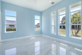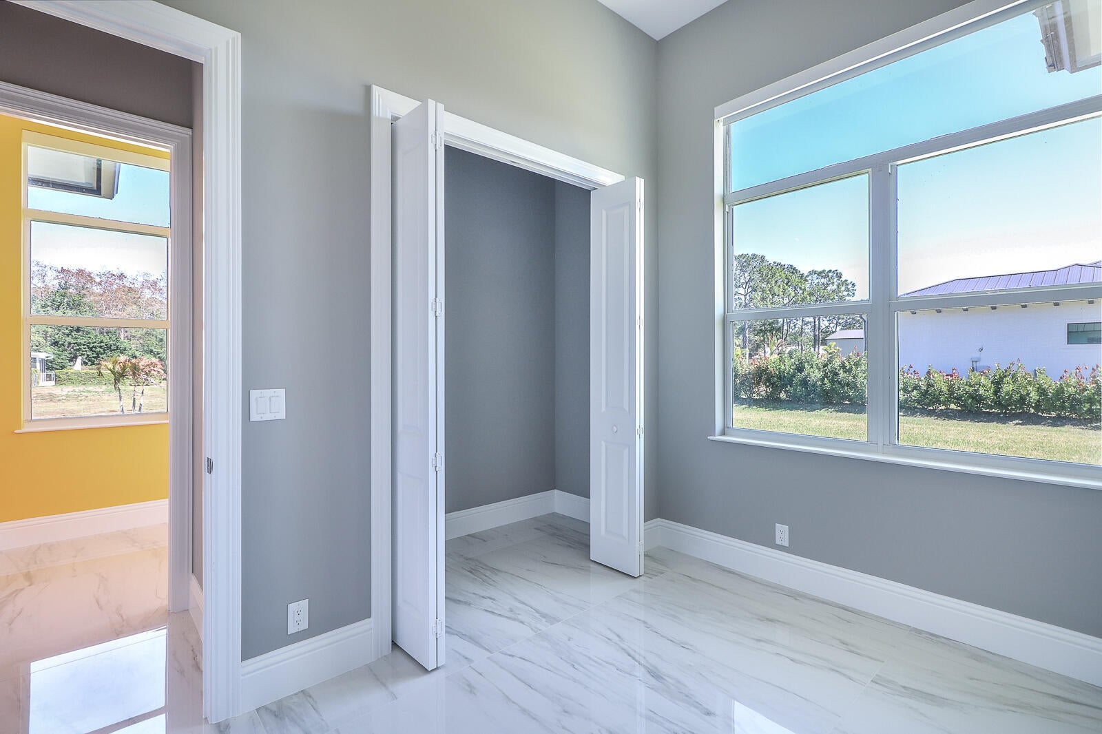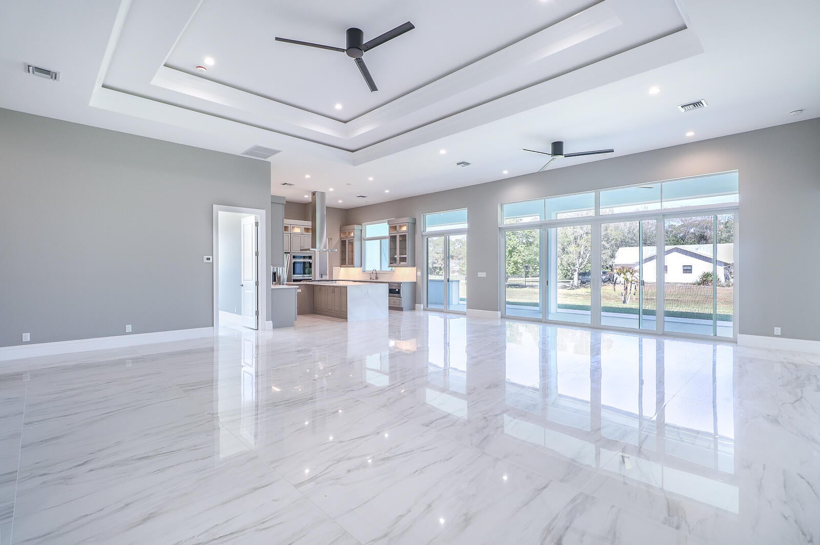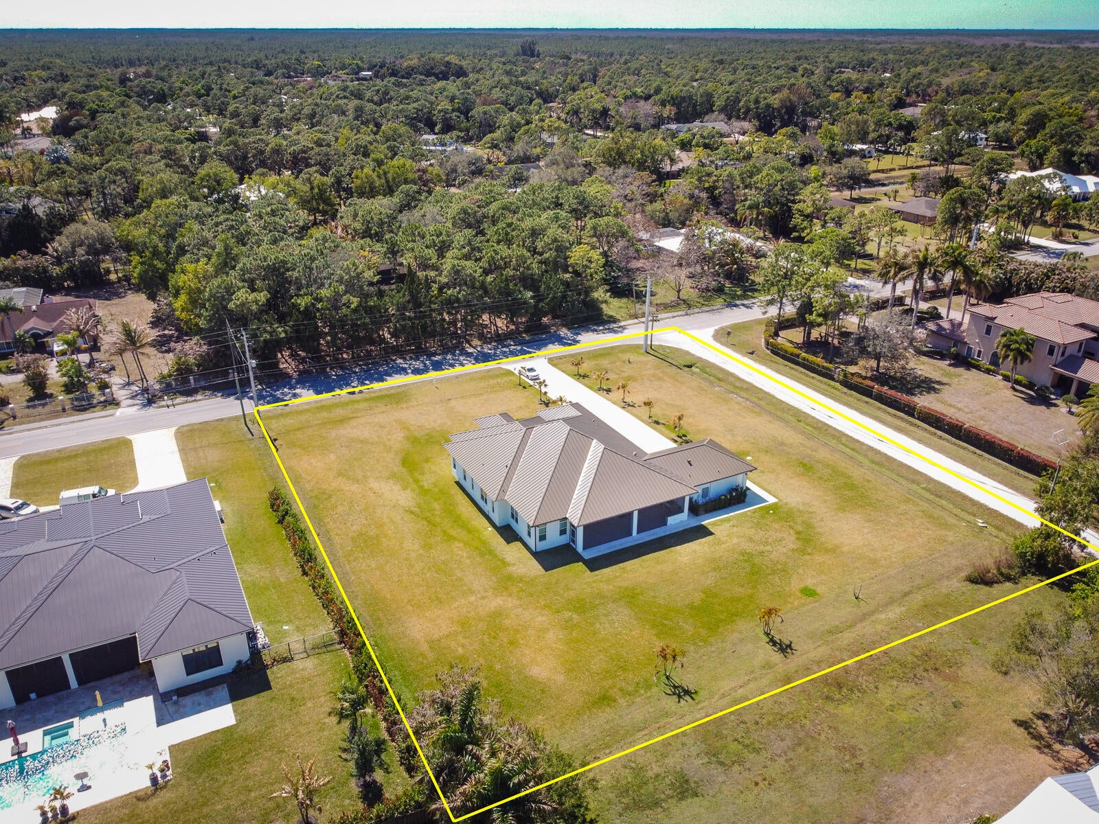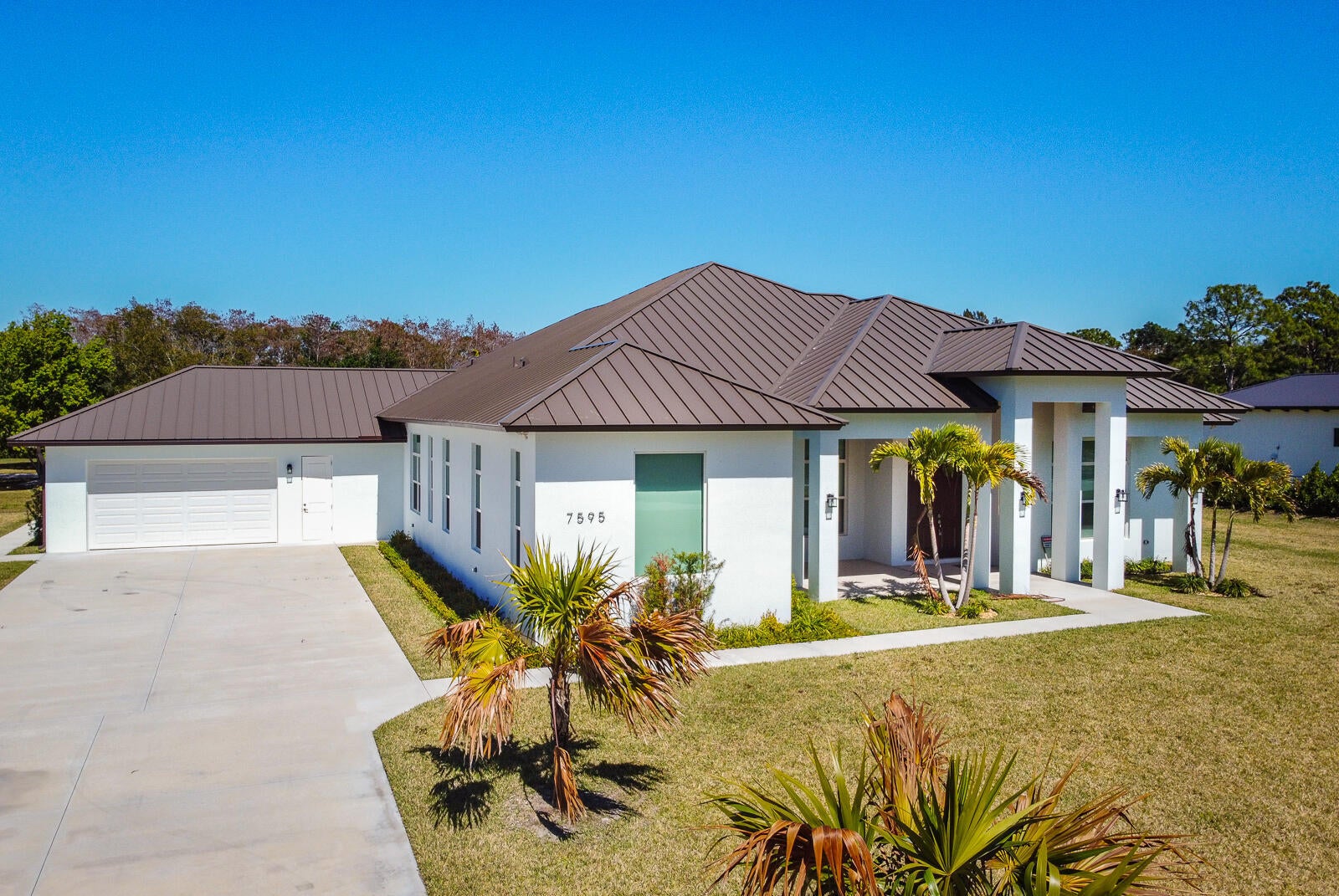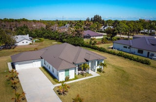 This BRAND-NEW luxury CBS home located on a 1.16-acre corner lot on a paved road in Palm Beach Country Estates features 5 bedrooms plus a den, 4.5 baths, and an oversized 2-car garage. Metal roof and hurricane impact windows. Luxury finishes and 12-foot ceilings throughout. Split floorplan with enormous great room at the center. An underground propane tank supplies the kitchen range, water heater, and summer kitchen. Open kitchen with high-end stainless-steel appliances and large center island. Master bedroom features two large walk-in closets and a master bath with standalone bathtub, dual vanities, and separate shower. Hobby/bonus room off the great room with lots of sunlight. Two A/C zones. Large covered porch with frameless screen.Opportunities to purchase a brand-new home in this subdivision are rare -very few vacant lots left. Palm Beach Country Estates features quiet country living with no HOA, city water, and close proximity to area amenities such as Alton Town Center and Abacoa.