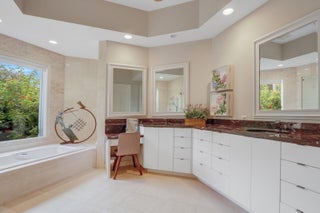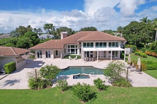 NEARLY ONE ACRE LOT! Breathtaking lakefront beauty is showcased in this spacious, light-filled single story residence in the prestigious community of Frenchman's Creek. Offering 4 bedrooms plus an office and 4.5 bathrooms - including a private and convenient 1/1 casita - this impressive estate spans over 6500 sq ft of living space on an expansive .87 acre lot. Designed for both grand entertaining and comfortable everyday living, the thoughtful crafted floor plan features generous living spaces enhanced by tasteful updates throughout. A contemporary kitchen and a striking double-sided fireplace elegantly adorns the main entertaining spaces. Soaring volume ceilings and an entire wall of windows frame exquisite lake views to create perfect Florida indoor/outdoor living. The grand primsuite serves as a private retreat, complete with an attached sitting/viewing room, oversized walk-in closets, and a spa-inspired bath. Enjoy serene garden vistas from the separate soaking tub and glass-enclosed shower, adding to the suite's tranquil ambiance. Step outside to experience remarkable lake vistas beyond the custom pool and spa, complemented by sizeable green space and lush landscaping. Schedule your private showing today! Frenchman's Creek Members enjoy the ultimate concierge lifestyle with resort amenities, state-of-the-art brand new clubhouse, two 18-hole championship golf courses - for only 600 homes. Numerous dining options, navigable waterways, racquet sports, social events and so much more. The exclusive Beach Club, included with membership, located on beautiful Juno Beach allows use of pool, restaurant, beach attendant and water activities.