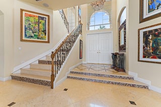 Experience the premier Frenchman's Reserve lifestyle in this coveted Villa Rosa estate, situated just a block away from the Club in the heart of Palm Beach Gardens. Set on an exceptional lot with unrivaled lake and Arnold Palmer championship golf course views, this home offers a brand-new roof (2025) and is an extraordinary opportunity to personalize a luxury residence in one of the area's most exclusive country club communities. From the moment you open the double doors, soaring 24' ceilings and a wall of floor-to-ceiling windows fill the home with natural light and showcase stunning views of the tranquil lake and golf course. This luxury residence offers 5 bedrooms, 5 full bathrooms, 2 half bathrooms, a spacious loft, a separate library, and a dedicated home theater/movie room.The kitchen flows seamlessly into the family room and casual dining area, creating an open-concept space perfect for entertaining. A wet bar with bar seating completes the formal living and dining room entertaining areas. The elegant loft overlooks the main living room, adding openness and architectural drama to the heart of the home. The primary suite features the same breathtaking golf, water and pool views, his-and-hers walk-in closets with custom built-ins, and an adjoining room that can serve as a gym, office, or dressing area, with dual bathrooms for ultimate convenience. First floor also includes a private guest bedroom with ensuite bath and 2 half baths. Upstairs, four gracious guest suites provide private retreats, including a secondary primary suite with a private balcony, walk-in closet, and an oversized spa bathroom. A circular driveway and 2-car + golf cart garage provide both striking curb appeal and functional convenience. EV charger ready! Outdoor living includes a heated pool, spa, and expansive gated patio for year-round enjoyment. This home is more than a residence-it's a lifestyle. Residents of Frenchman's Reserve enjoy world-class amenities including golf, tennis and pickleball courts, a state-of-the-art fitness center, resort-style clubhouse with fabulous dining options and a Kids Club. A social/sports membership is required, with the option to join the golf exchange program for additional golfing privileges.