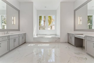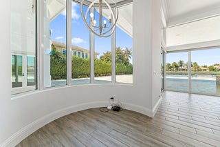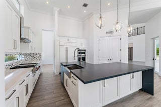 Exquisitely crafted in 2019 and designed to the highest standards, this extraordinary custom residence offers the perfect blend of architectural drama, refined luxury, and effortless indoor outdoor living. From the moment you arrive, the striking high end front door makes a bold statement as it cantilevers open, setting the tone for what lies beyond.As one of the newer homes in Jupiter Country Club and situated on one of the largest lots in the entire community, this property offers a rare combination of modern construction, expansive outdoor space, and premier positioning that is increasingly difficult to find.Step inside to a breathtaking grand entry featuring 25 foot coffered ceilings and dramatic walls of glass that flood the home with natural light throughout the day. Theexpansive floor plan was thoughtfully designed for a large family who loves to entertain, offering generous gathering spaces balanced with private retreats. The ultra sleek white custom gourmet kitchen is a true showpiece, complete with a waterfall edge center island, porcelain flooring, and seamless flow into the main living and dining areas. The owner's suite is a private sanctuary with floor to ceiling windows, oversized his and hers walk in closets, and a dedicated dressing area. Luxe finishes and elevated design details are showcased in every room. Freshly painted inside and out, this home has been meticulously cared for and shows like a brand new residence. Every space reflects pride of ownership and thoughtful maintenance. Outdoors, the property transforms into a private resort. The expansive travertine deck surrounds a stunning 50 by 20 custom pool and spa, complemented by a fully equipped outdoor kitchen, multiple dining and lounging areas, and sweeping long lake views that create the ultimate backdrop for entertaining. Located within the prestigious gated community of Jupiter Country Club, residents enjoy a lifestyle built around the renowned Greg Norman designed golf course, along with two resort style pools, a state of the art fitness center, lighted tennis courts, and exceptional clubhouse dining. The location is simply unmatched. Just minutes to the pristine beaches of Jupiter, world class waterfront dining, upscale shopping, and convenient access to I 95 and the Florida Turnpike, this home places you in the heart of everything while still offering privacy and exclusivity. This is more than a home. It is a statement property designed for those who value quality, space, and a vibrant South Florida lifestyle.